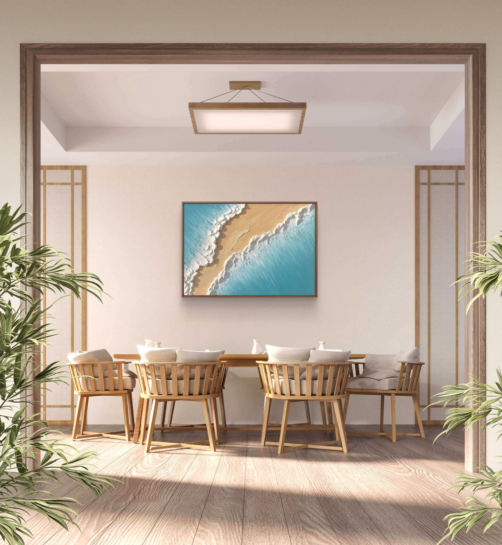 Introducing our stunning Thick Textured Beach Waves Painting, a masterpiece designed to elevate your living space with a touch of contemporary elegance. The painting boasts a rich colour palette of serene whites and calming blues, capturing the essence of the ocean in a way that adds tranquility and sophistication to any room. The thick texture adds a tactile dimension to the artwork, creating depth and visual interest that engages the viewer on a sensory level.