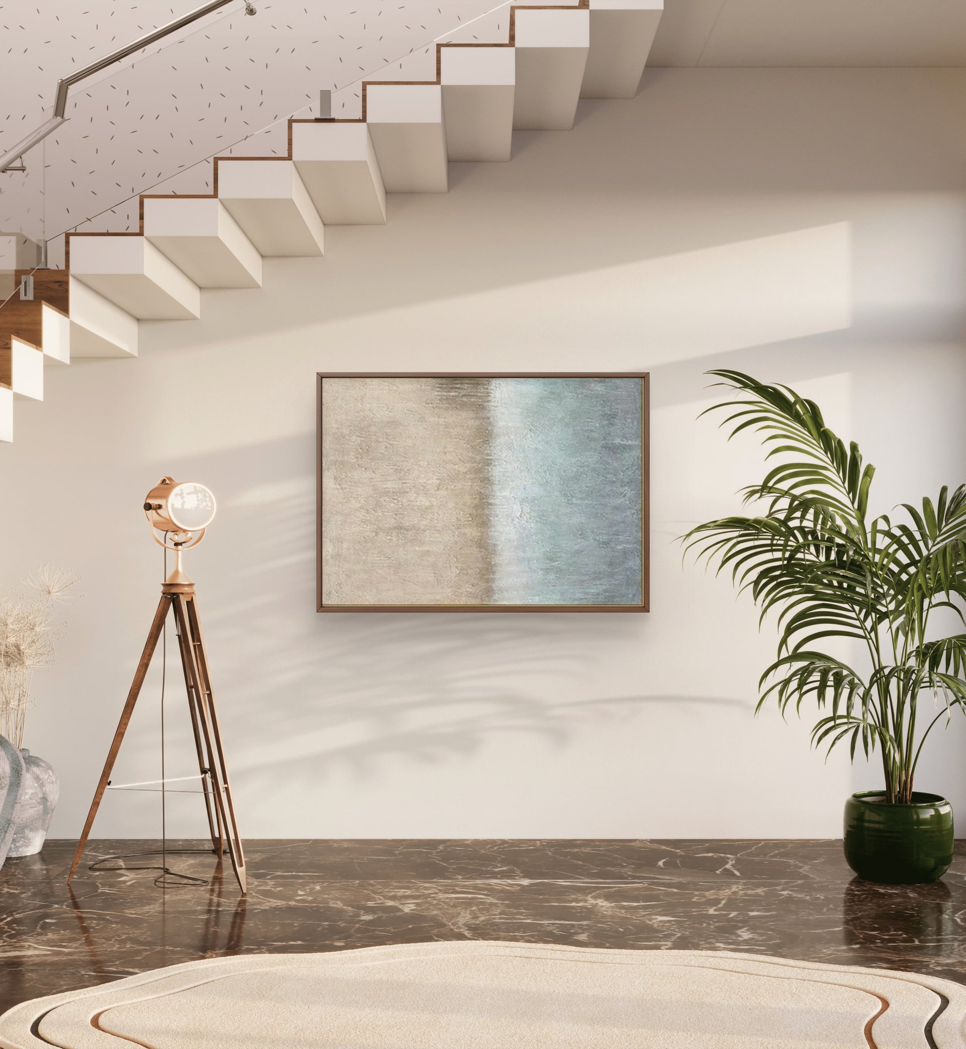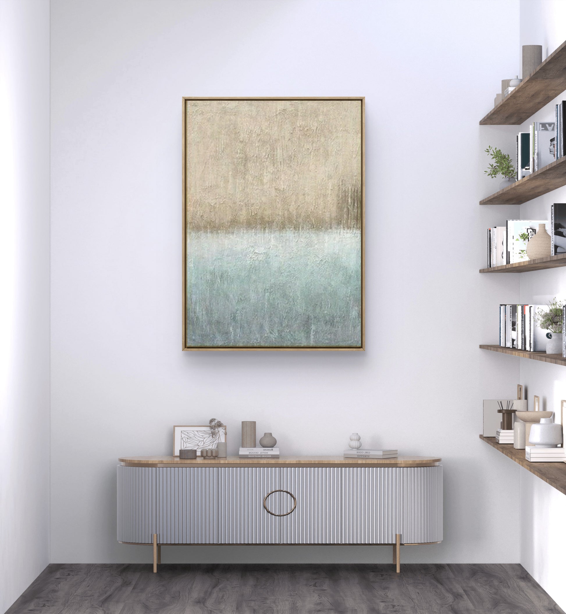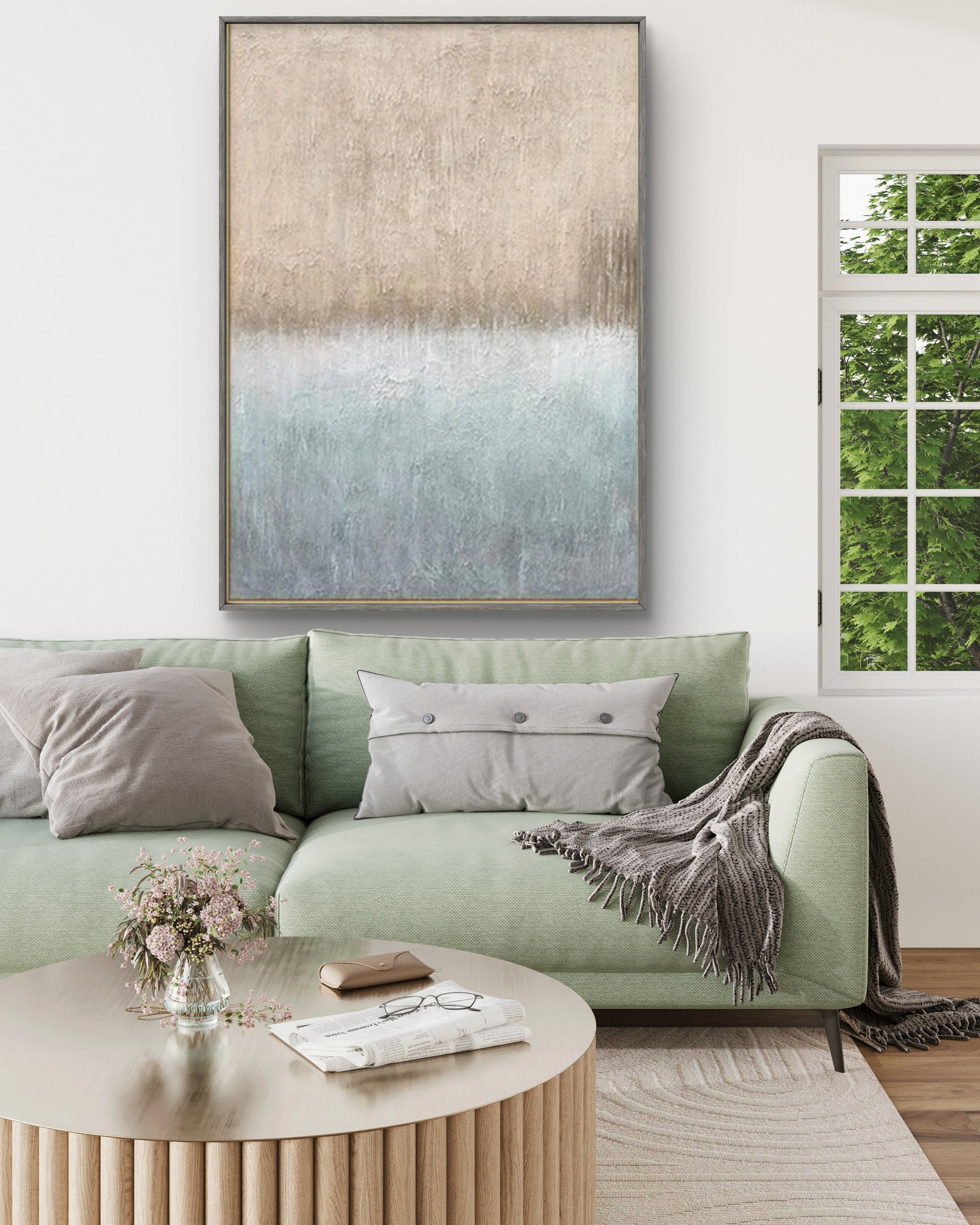 This piece, with its soothing blend of earthy brown and cool grey tones, adds a touch of sophistication and tranquility to any space. Its abstract design invites viewers to interpret its meaning, making it a captivating focal point in your home or office.