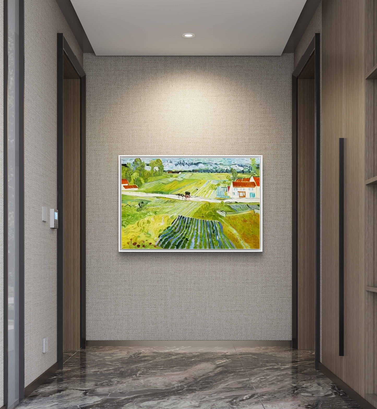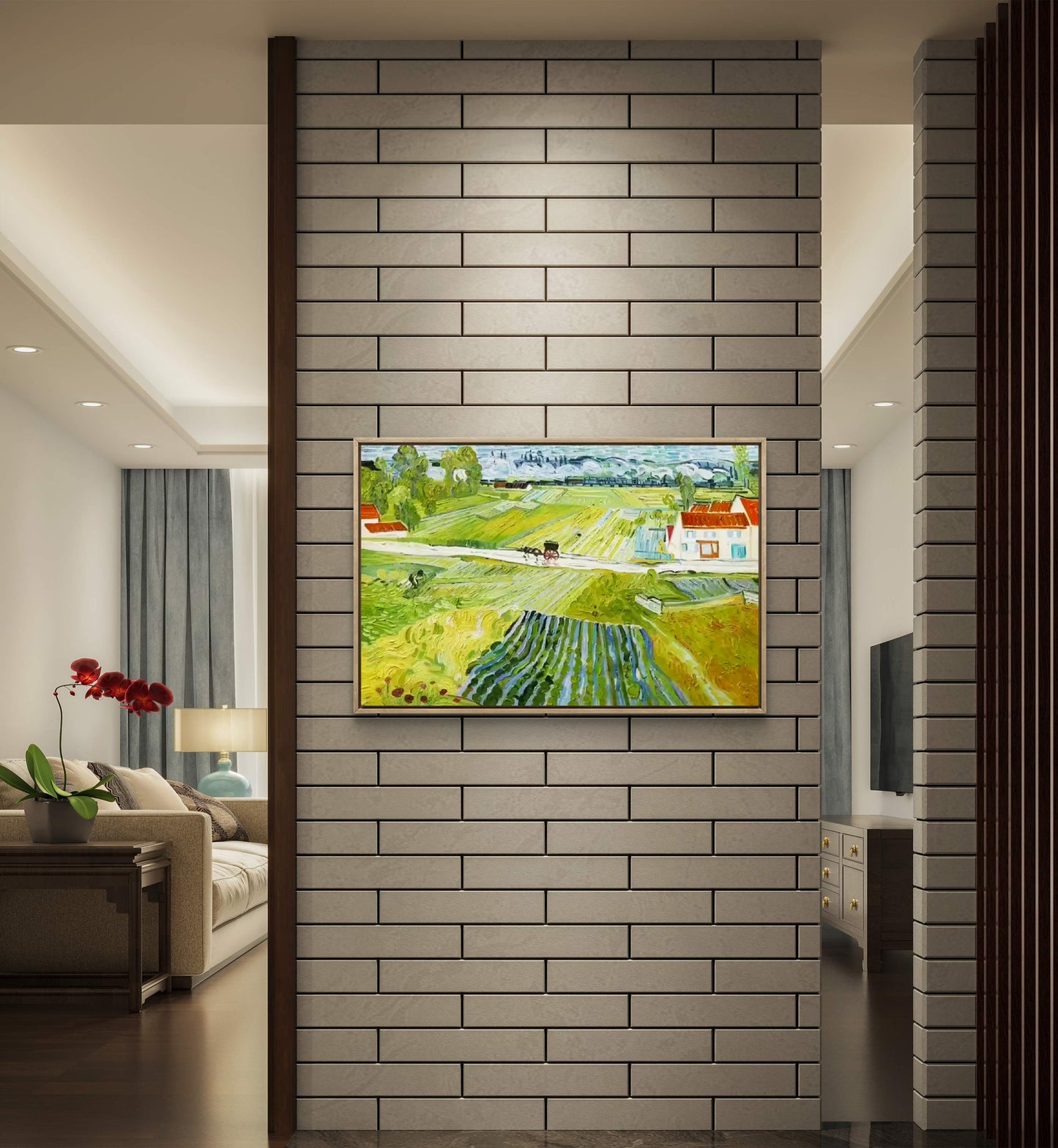 - Hand-painted artwork inspired by Van Gogh’s countryside themes