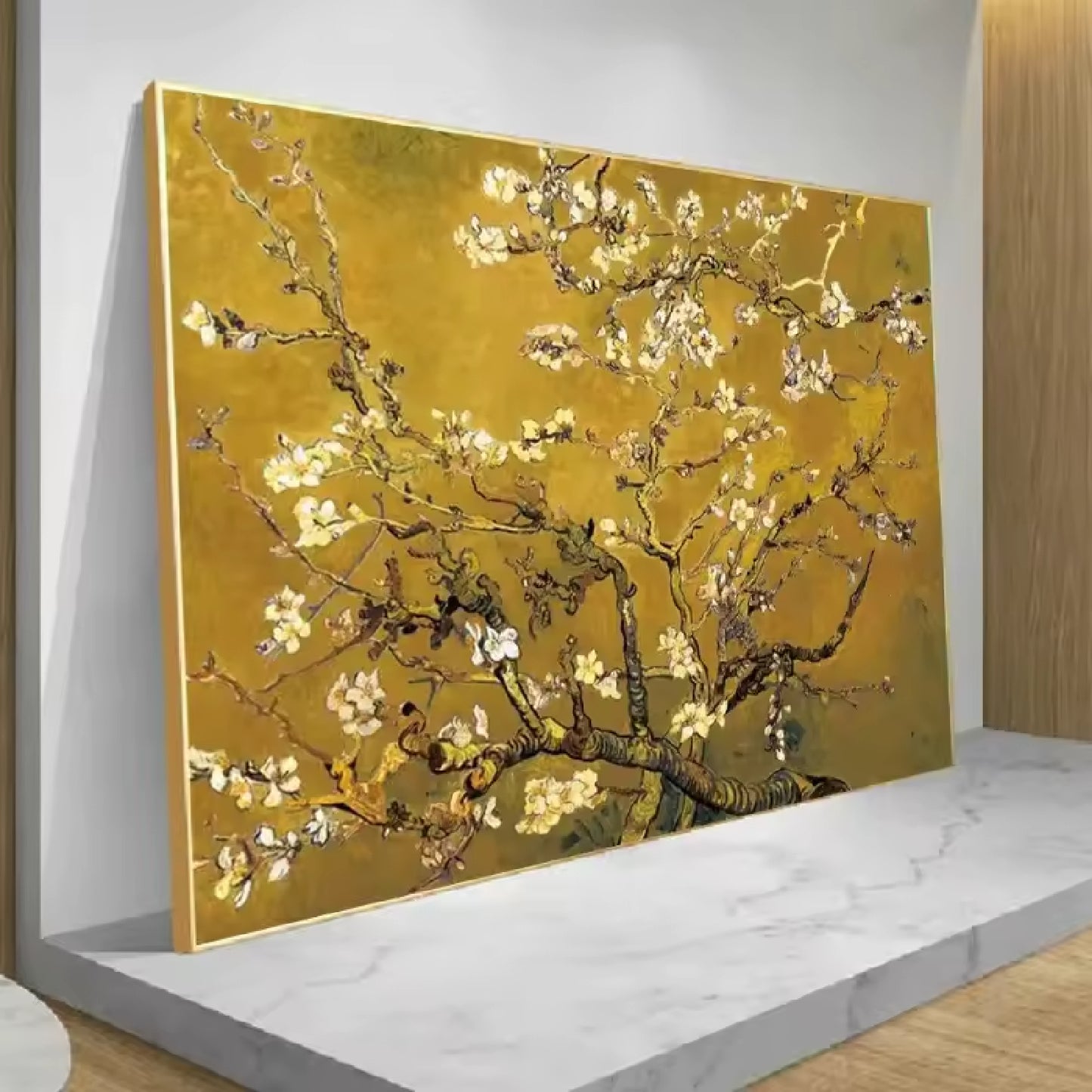 Van Gogh Inspired Almond Blossom Painting – Hand-Painted Golden Floral Wall Art