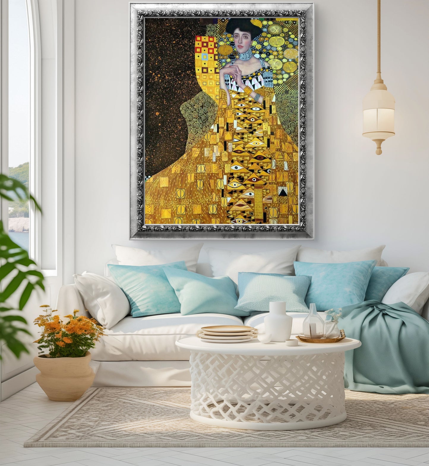 Experience the opulence and allure of Gustav Klimt's 'Portrait of Adele Bloch-Bauer I' with this stunning canvas art reproduction. The intricate details and golden hues make this piece a centrepiece for any sophisticated interior. Ideal for art aficionados, this painting exudes elegance and history.