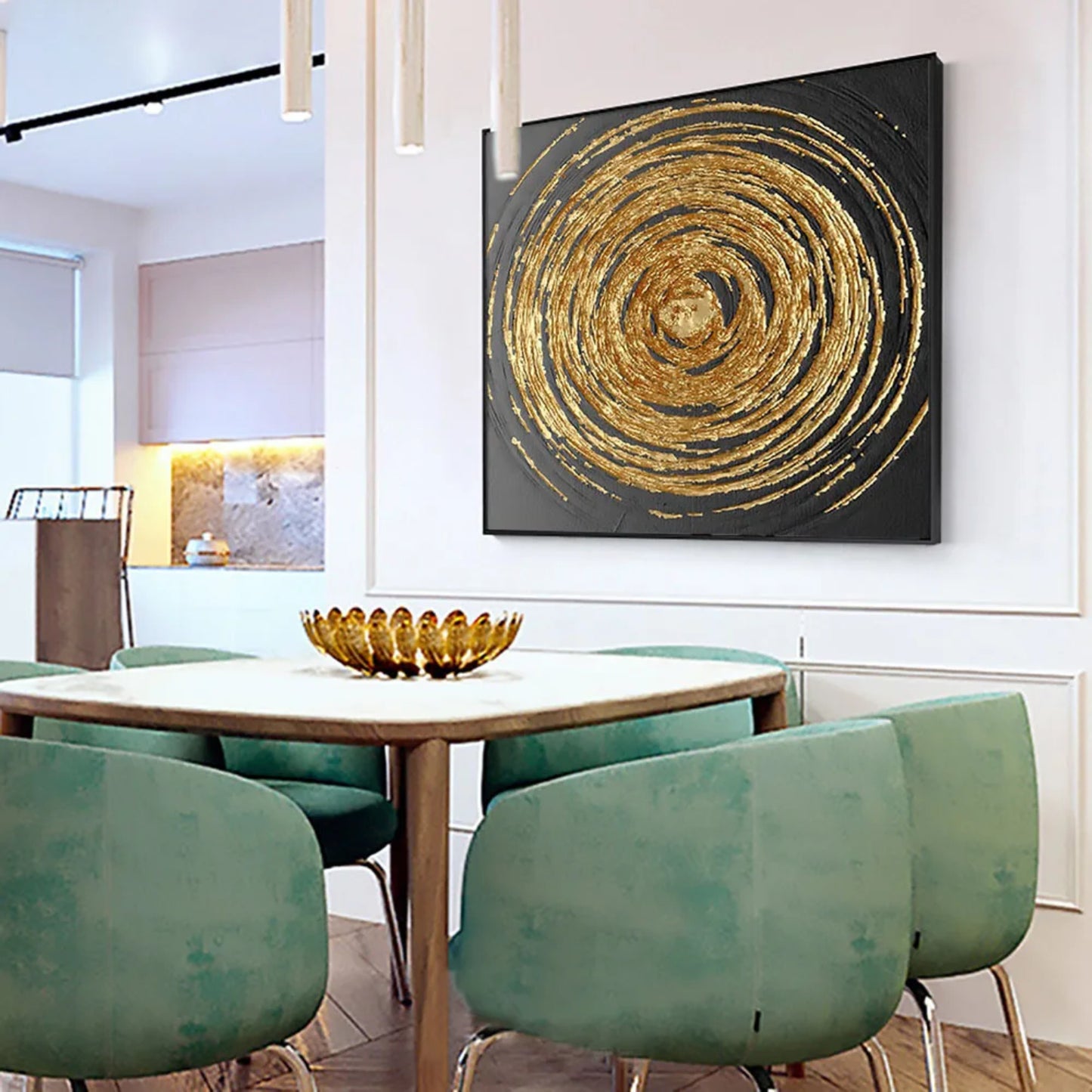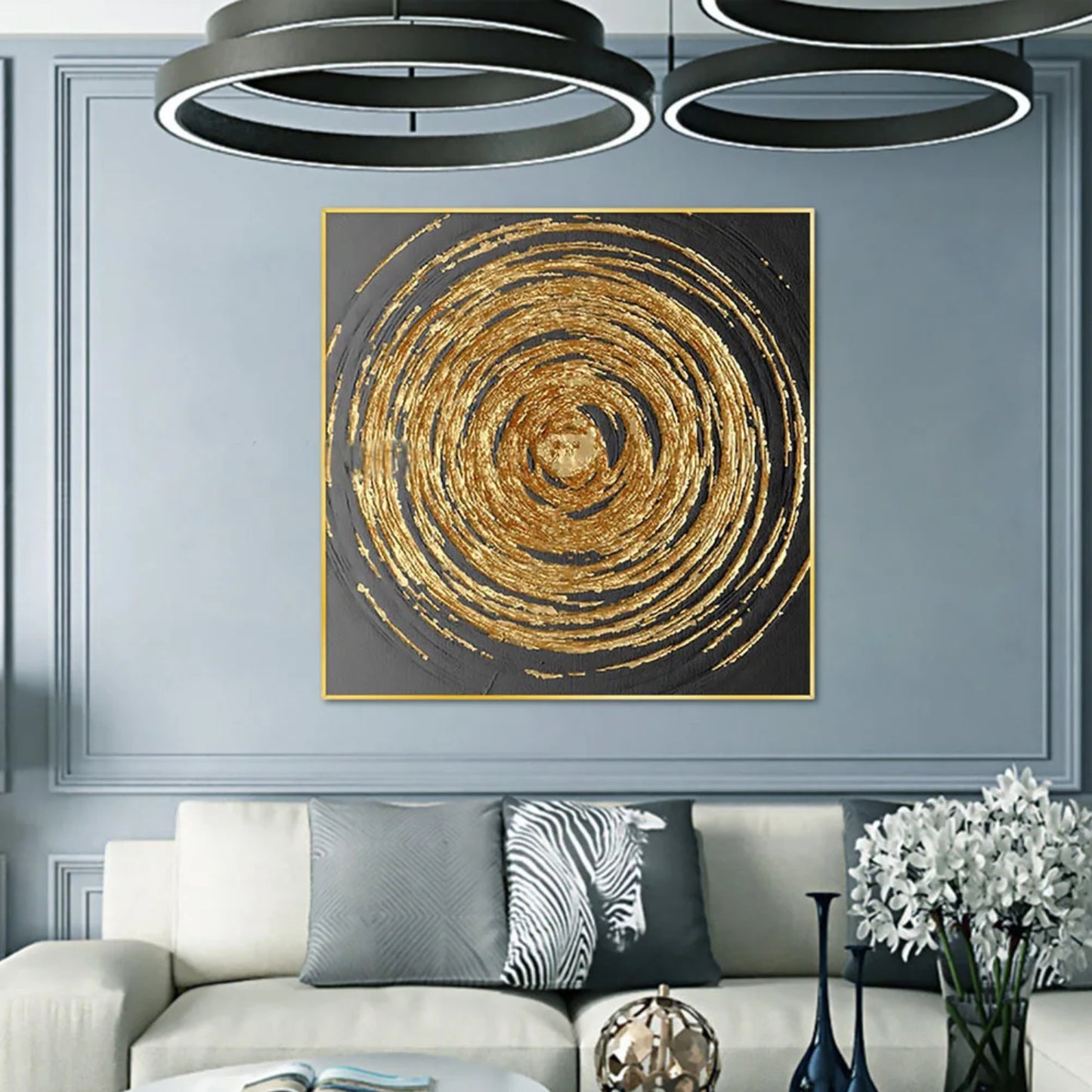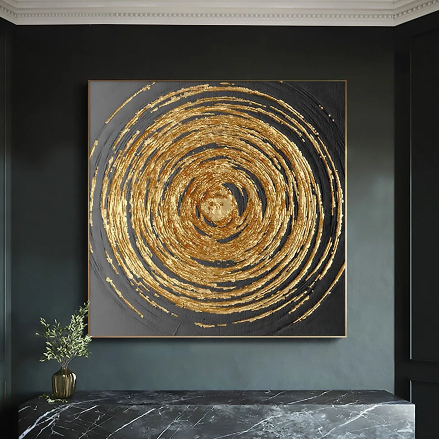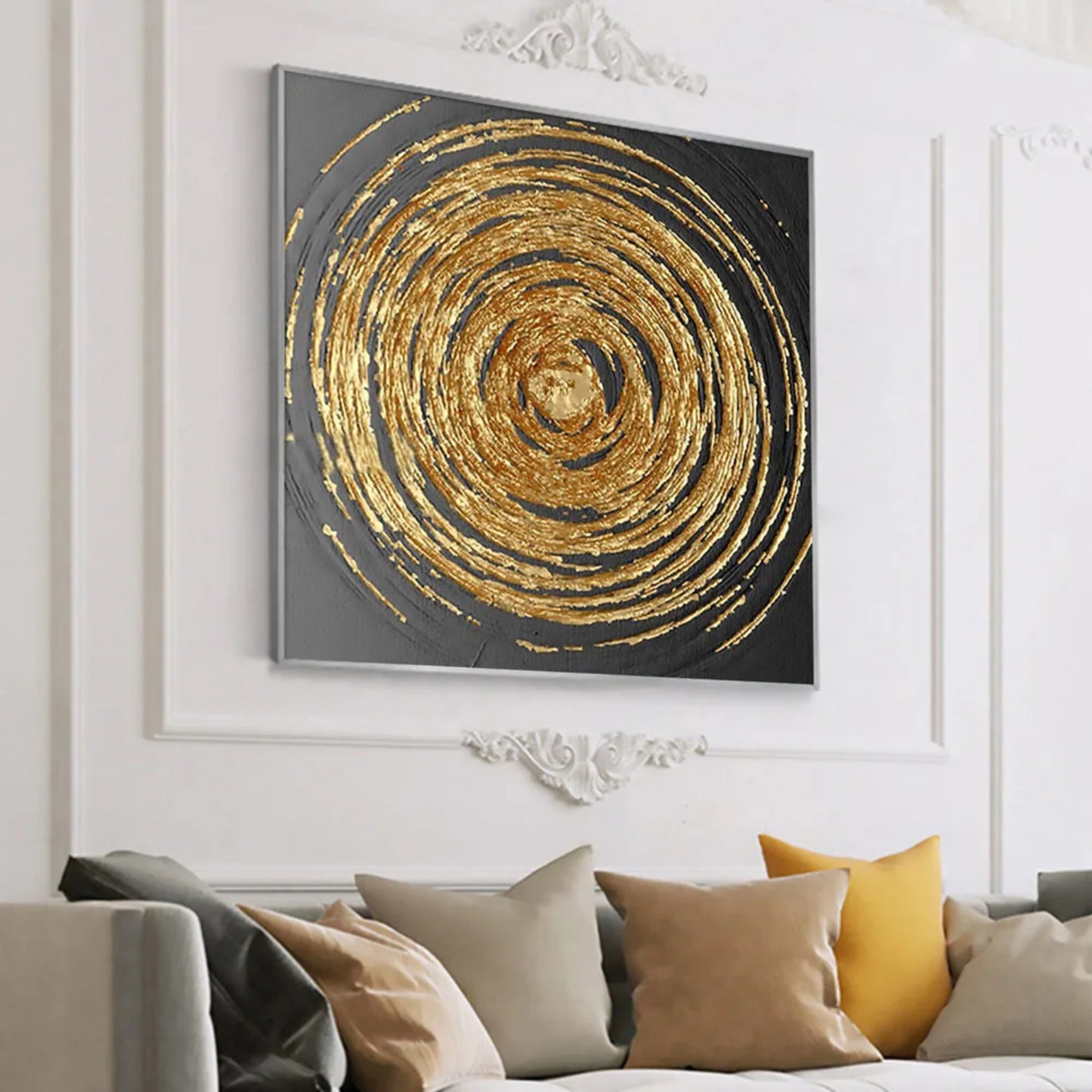 Minimalism meets radiance. Radiant Minimalism – Golden Circle Abstract Canvas Art is a stunning hand-painted artwork that embodies balance, luxury, and modern serenity. A luminous golden circle rises from a textured neutral background, symbolising harmony, energy, and perfection. The metallic gold leaf catches light beautifully, creating an elegant focal point that transforms any space with quiet opulence.
