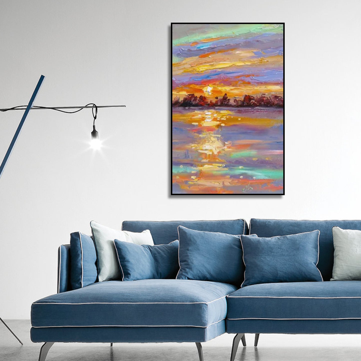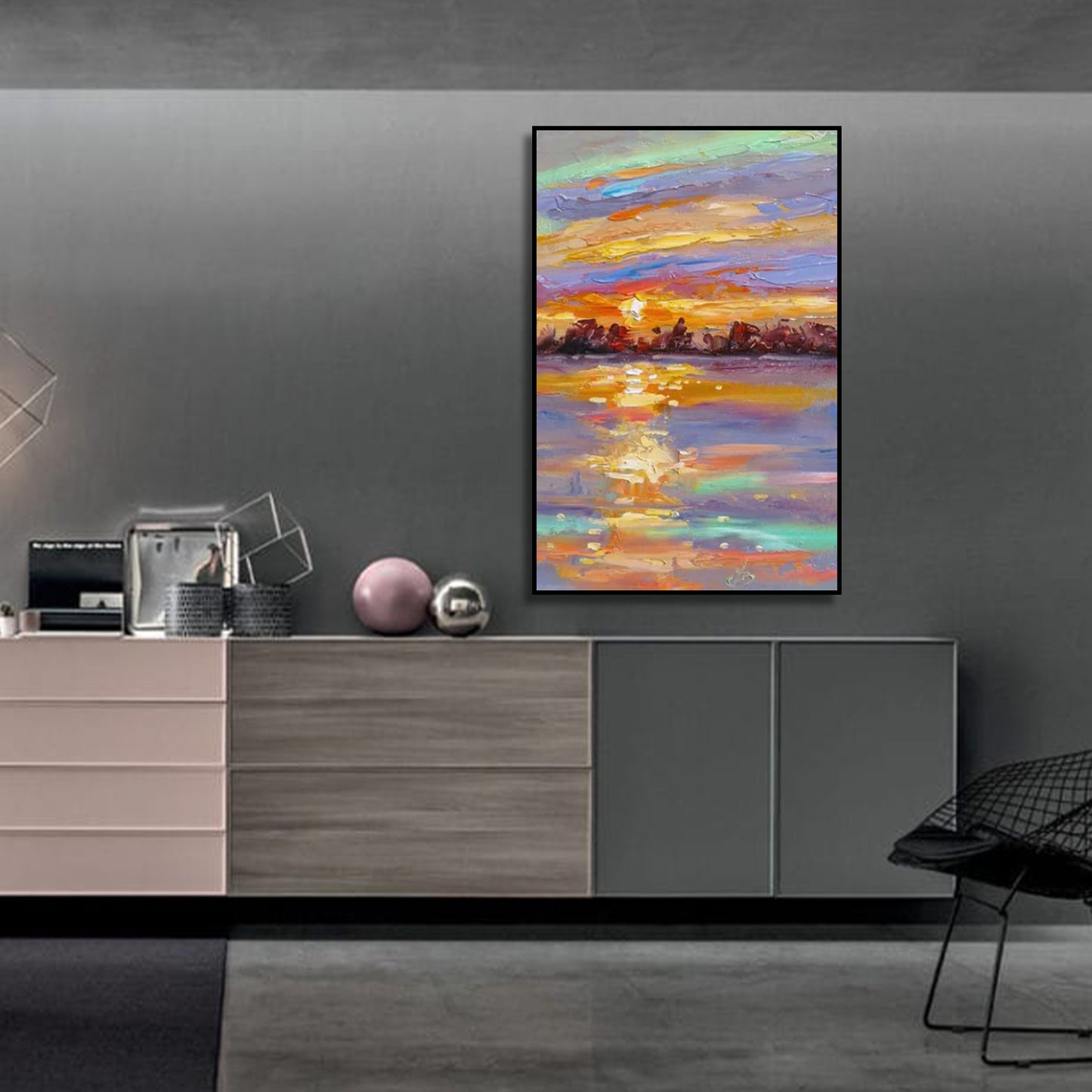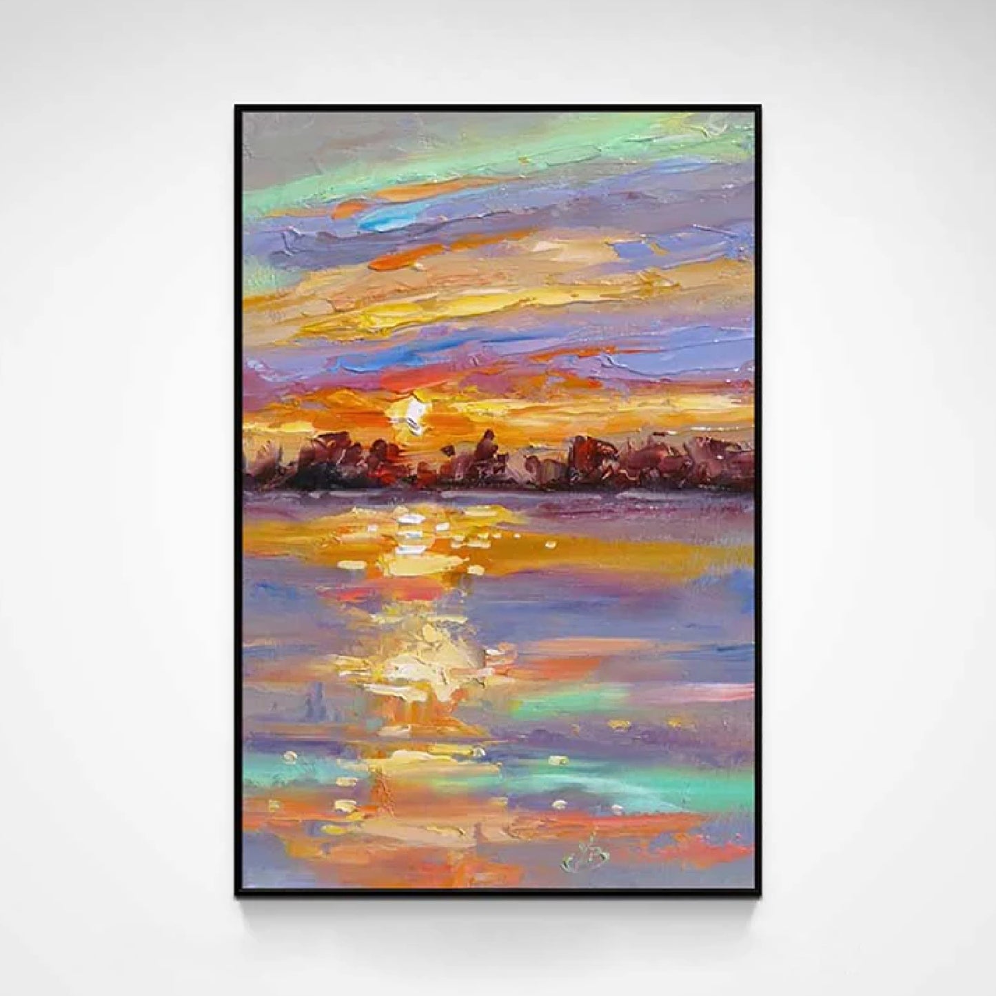 Introducing our Rich Sunset Reflection Seascape Textured Canvas Artwork, a breathtaking depiction of the tranquil beauty of the sea as it reflects the warm colours of the setting sun. Crafted with meticulous attention to detail, this captivating piece transports you to a world of serenity and wonder. Immerse yourself in the mesmerising scene as the sun dips below the horizon, casting a rich palette of oranges, pinks, and purples across the calm waters.