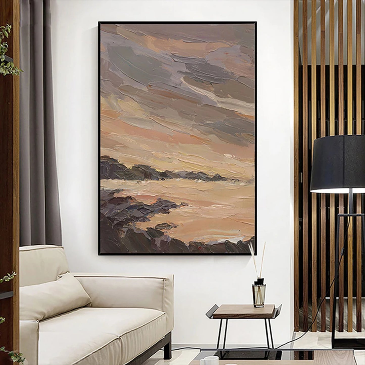 Warm Sunset Landscape Oil Painting Textured Brushstrokes Modern Decor