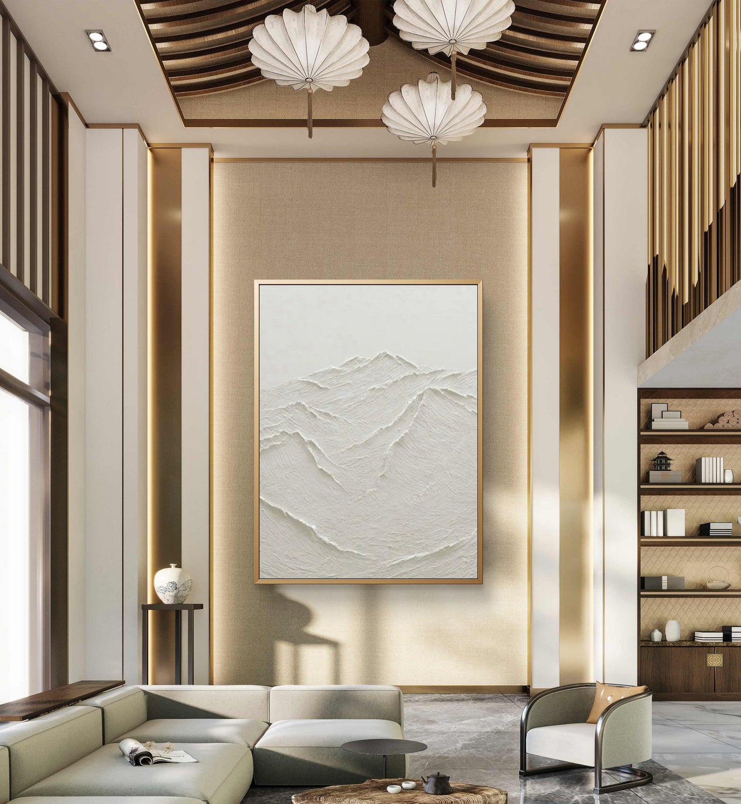 3D White Textured Mountain Ranges Abstract Living Room Oil Painting