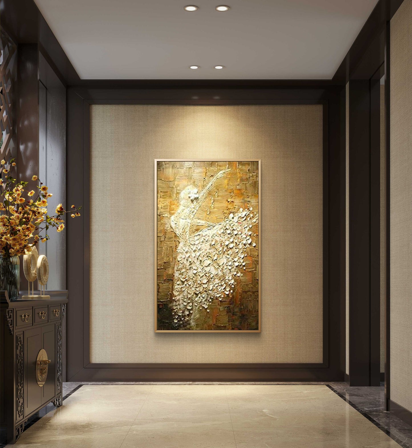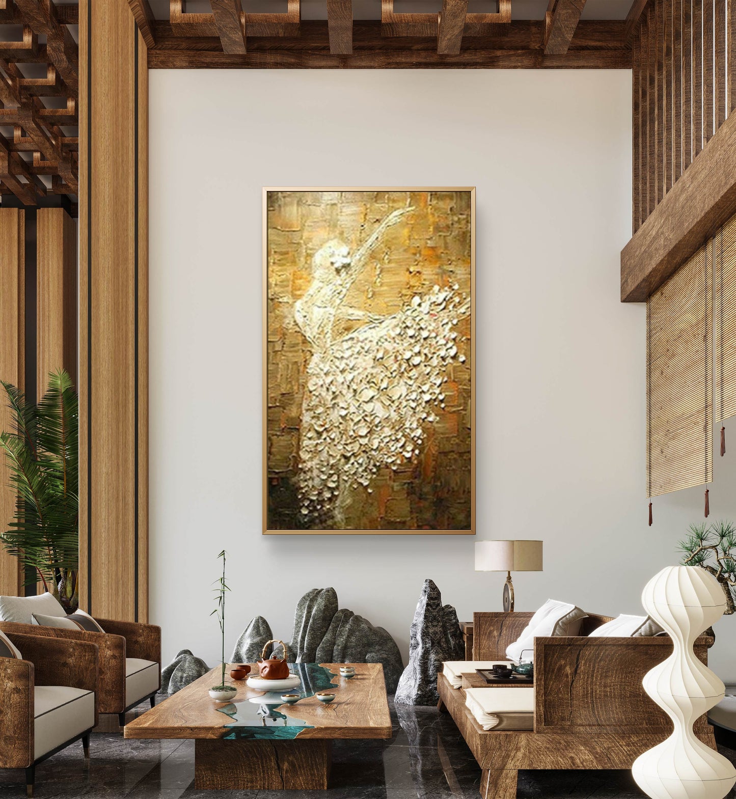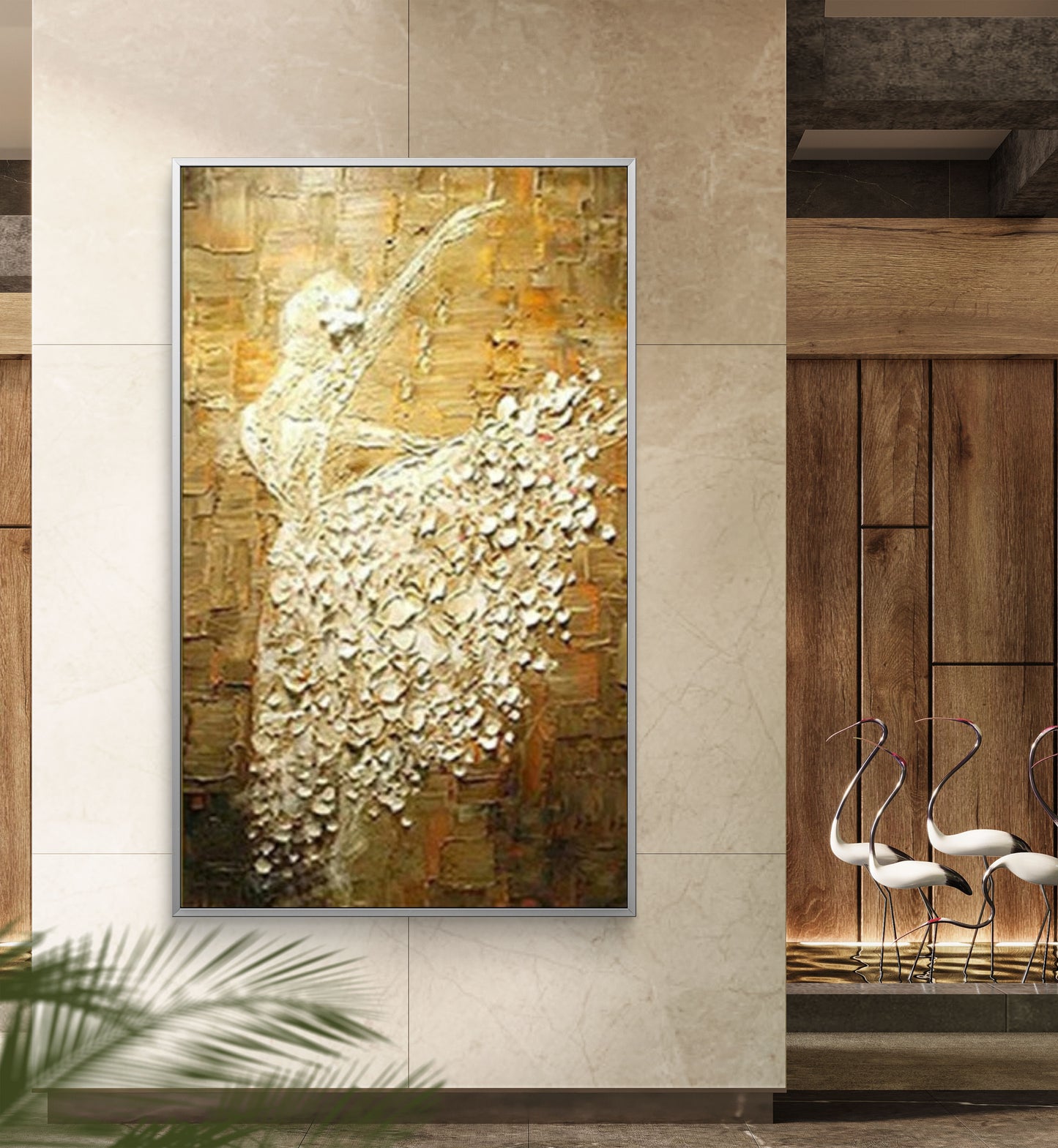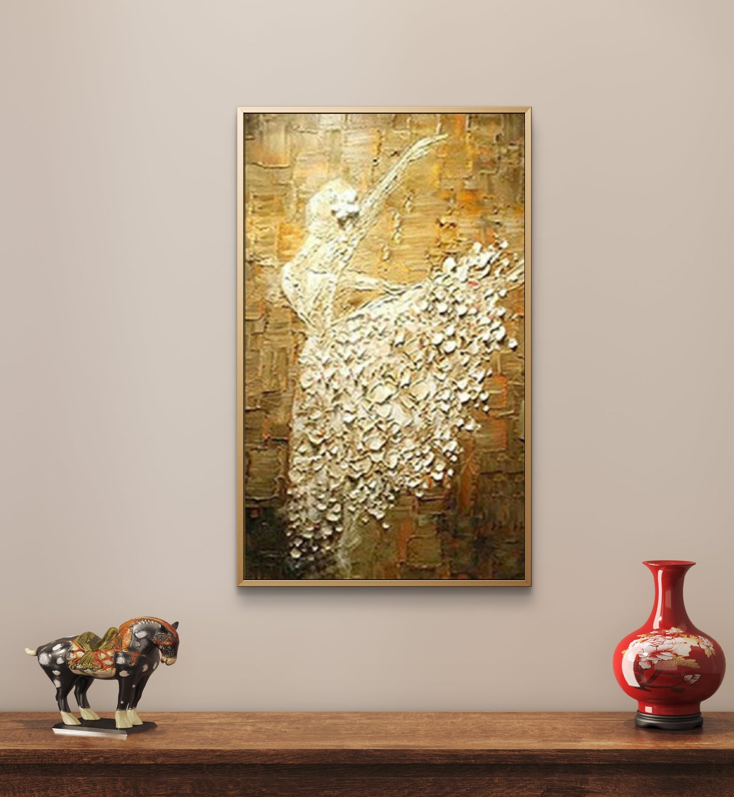 Immerse yourself in the fluid grace of movement with our Abstract Dancing Ballet Girl palette knife artwork. Created with bold strokes and textured layers, this captivating piece captures the ephemeral beauty of ballet. The dynamic interplay of colours and the tactile richness of the palette knife technique evoke the energy and passion of a dance performance, making it a mesmerising addition for art lovers and ballet enthusiasts alike.