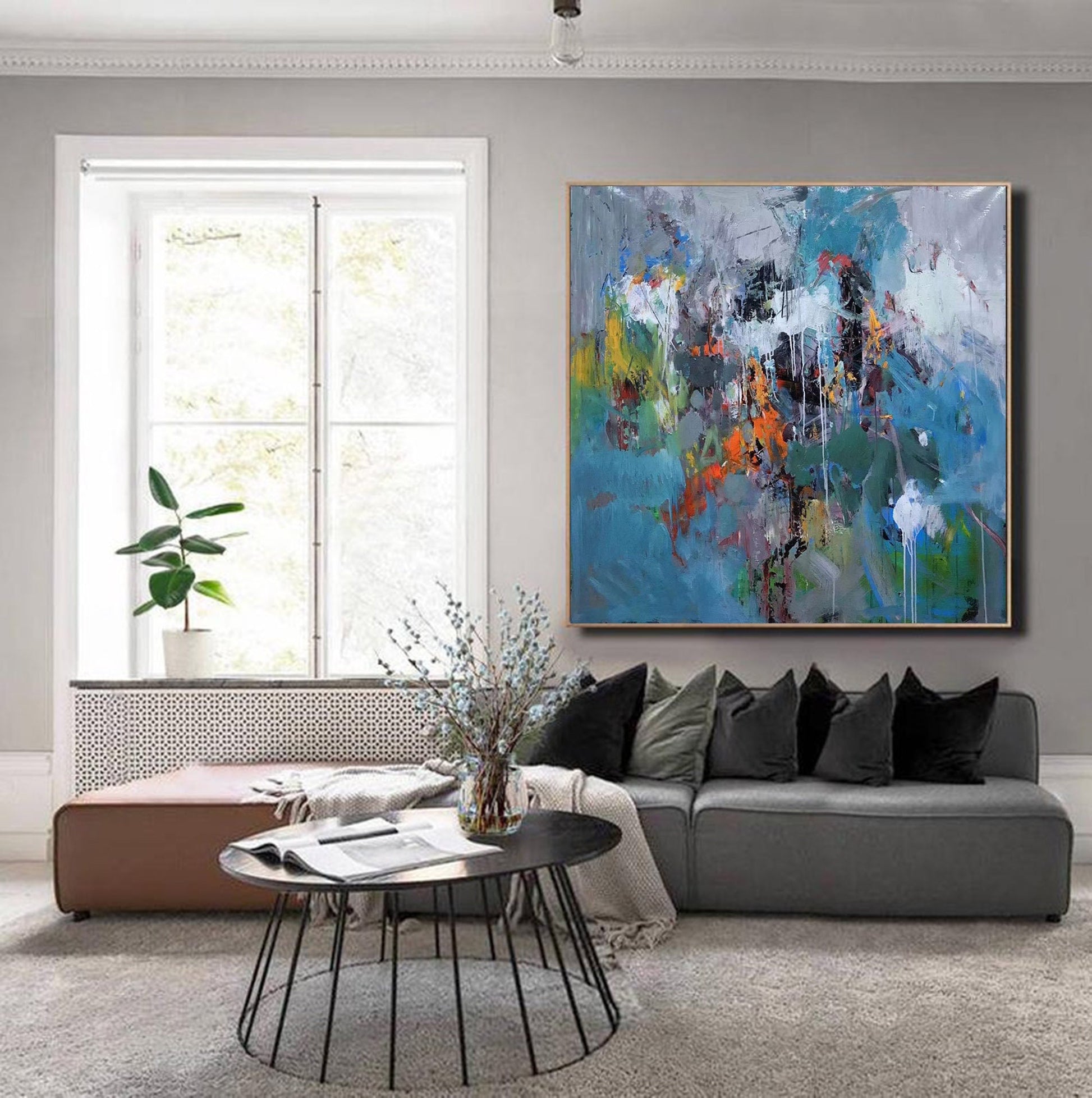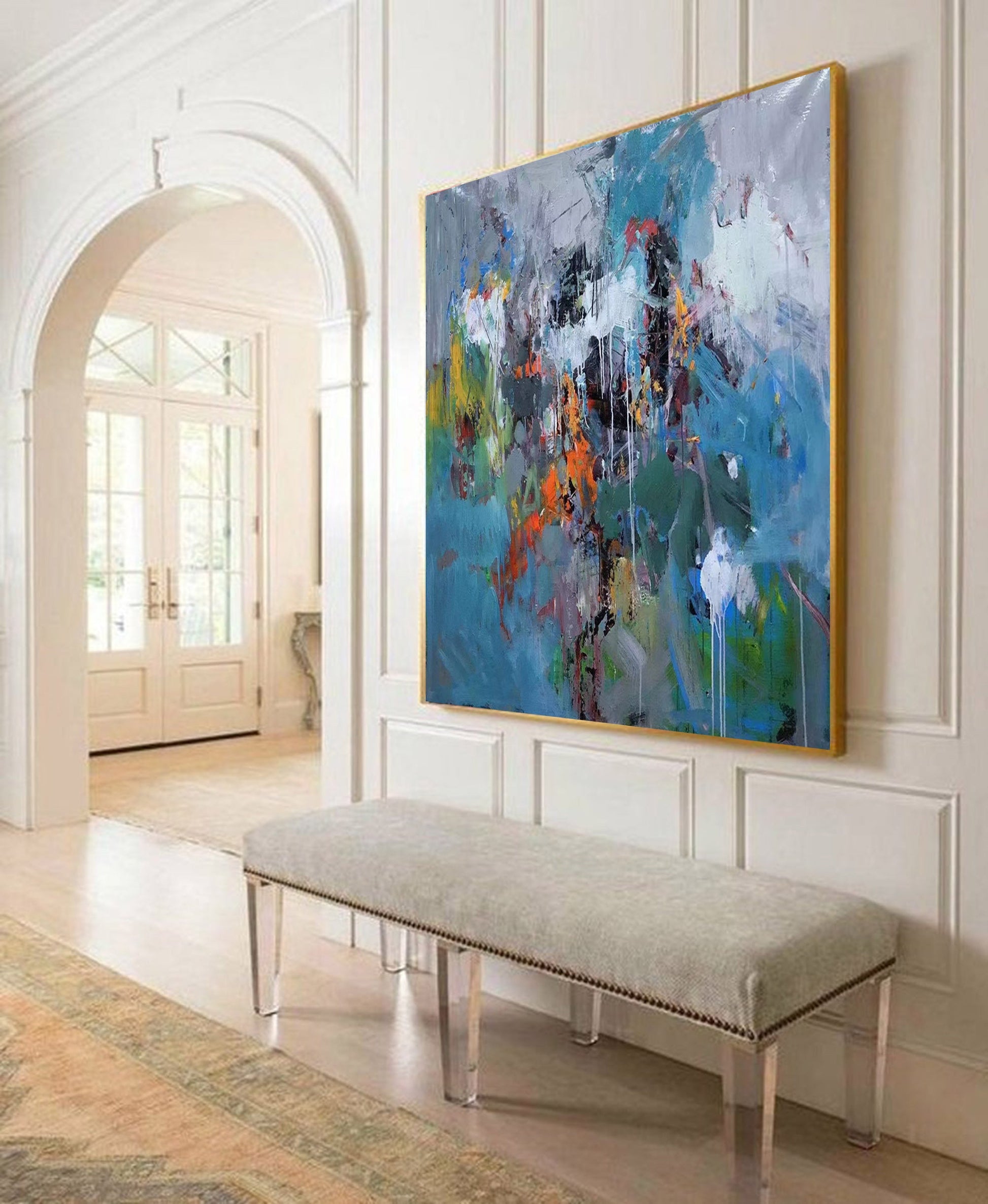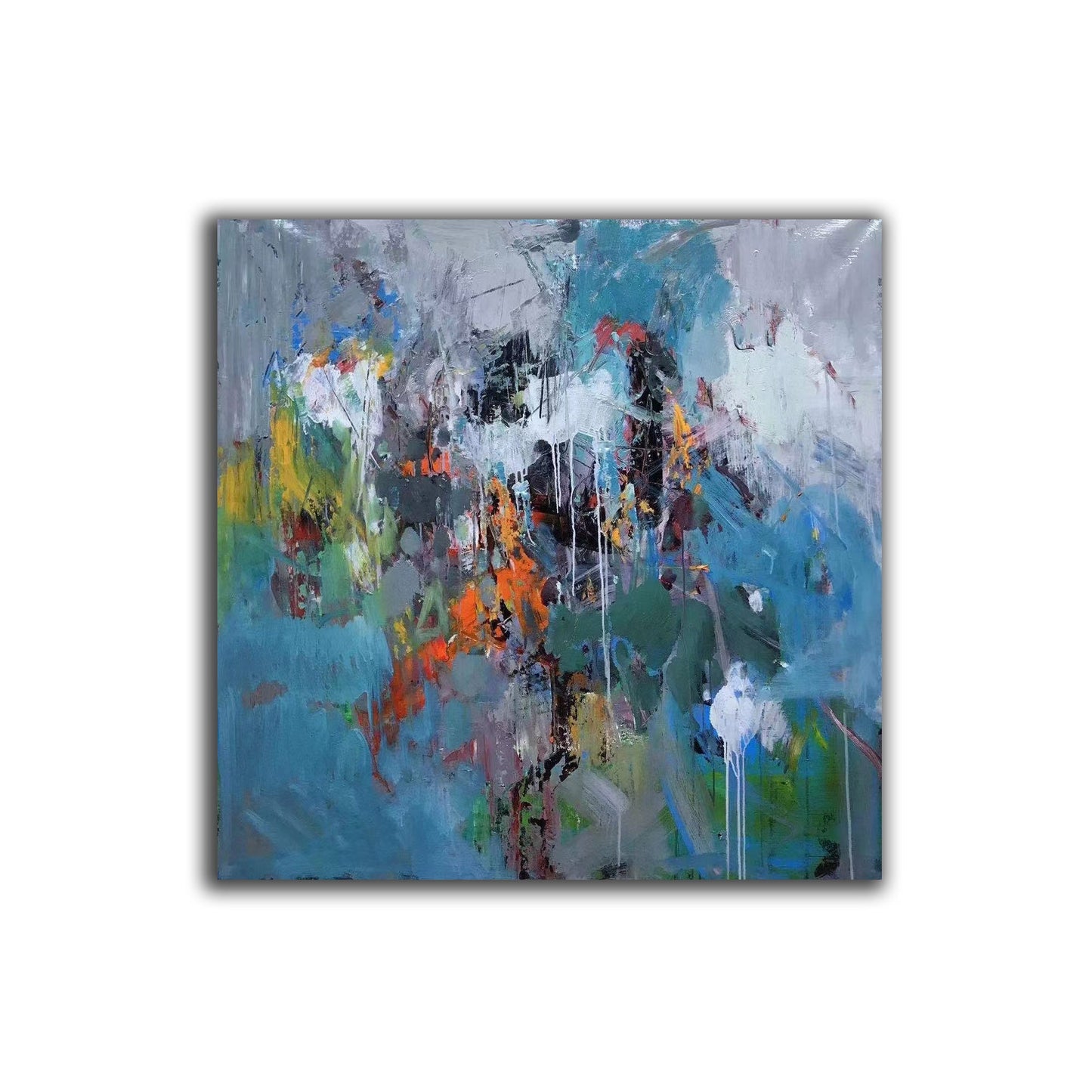 Bursting with energy and movement, this abstract expressionist canvas brings vibrant emotion to your space. Featuring intense layers of teal, orange, green, grey, and black, the painting showcases expressive brushstrokes, drips, and dynamic textures that evoke spontaneity and raw creativity. Accents of yellow, lavender, and red add dimension to the composition, making it a captivating centerpiece for bold modern interiors. Perfect for living rooms, art studios, or industrial lofts, this hand-painted artwork delivers an impactful dose of color and abstract storytelling.