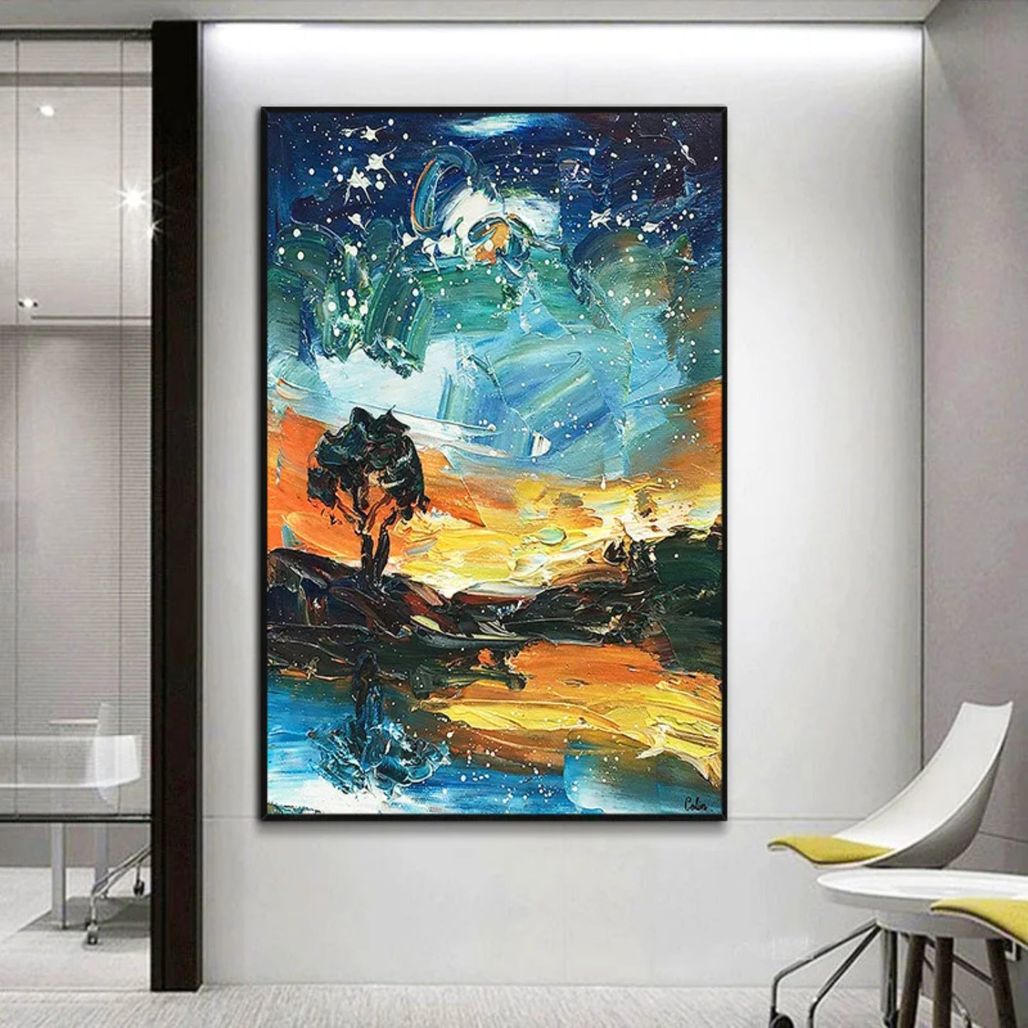 Heavy Textured Starry Sky Modern Landscape Artwork