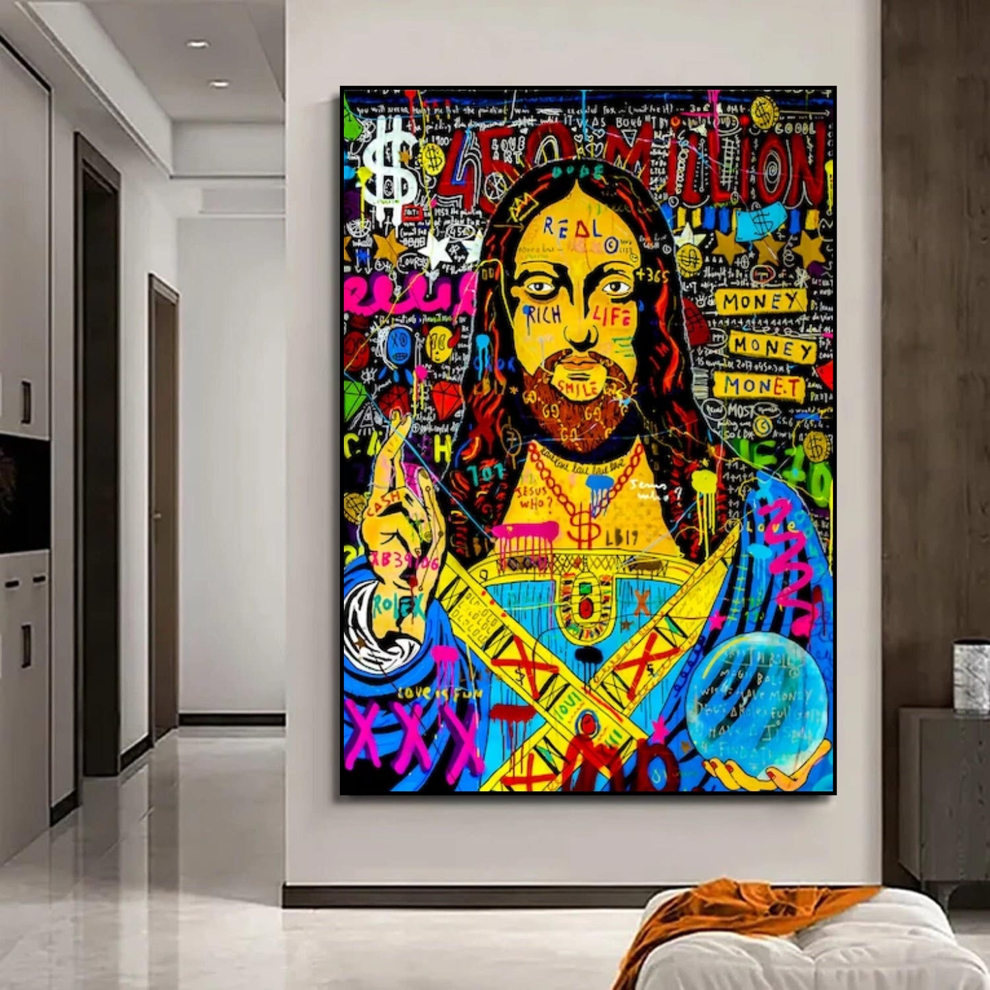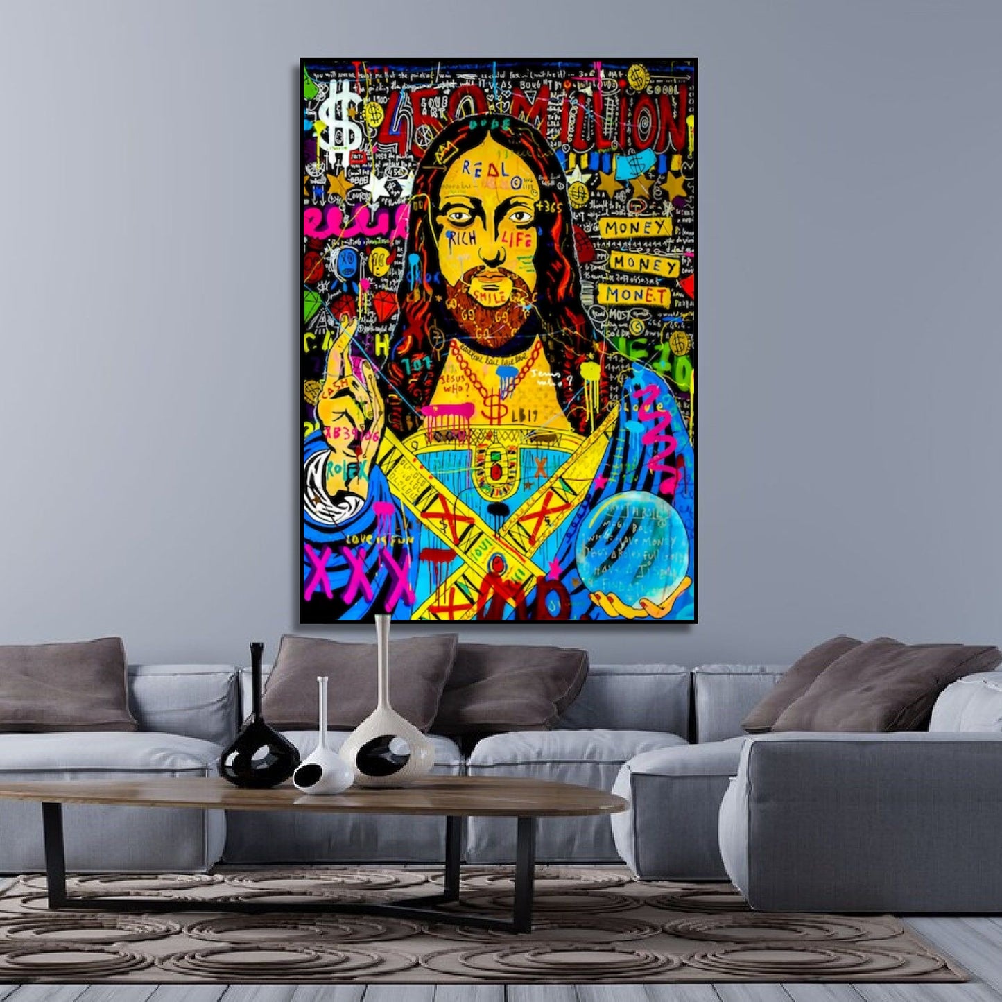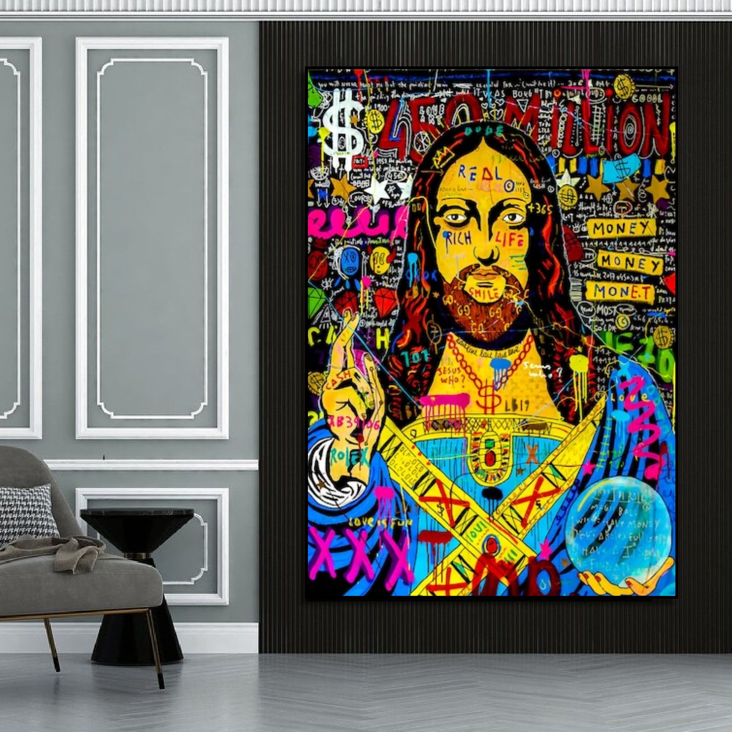 Jesus Multicolour Banksy Style Graffiti Oil Painting