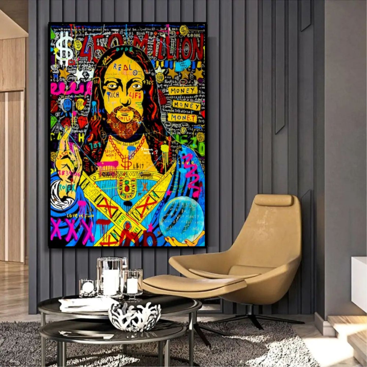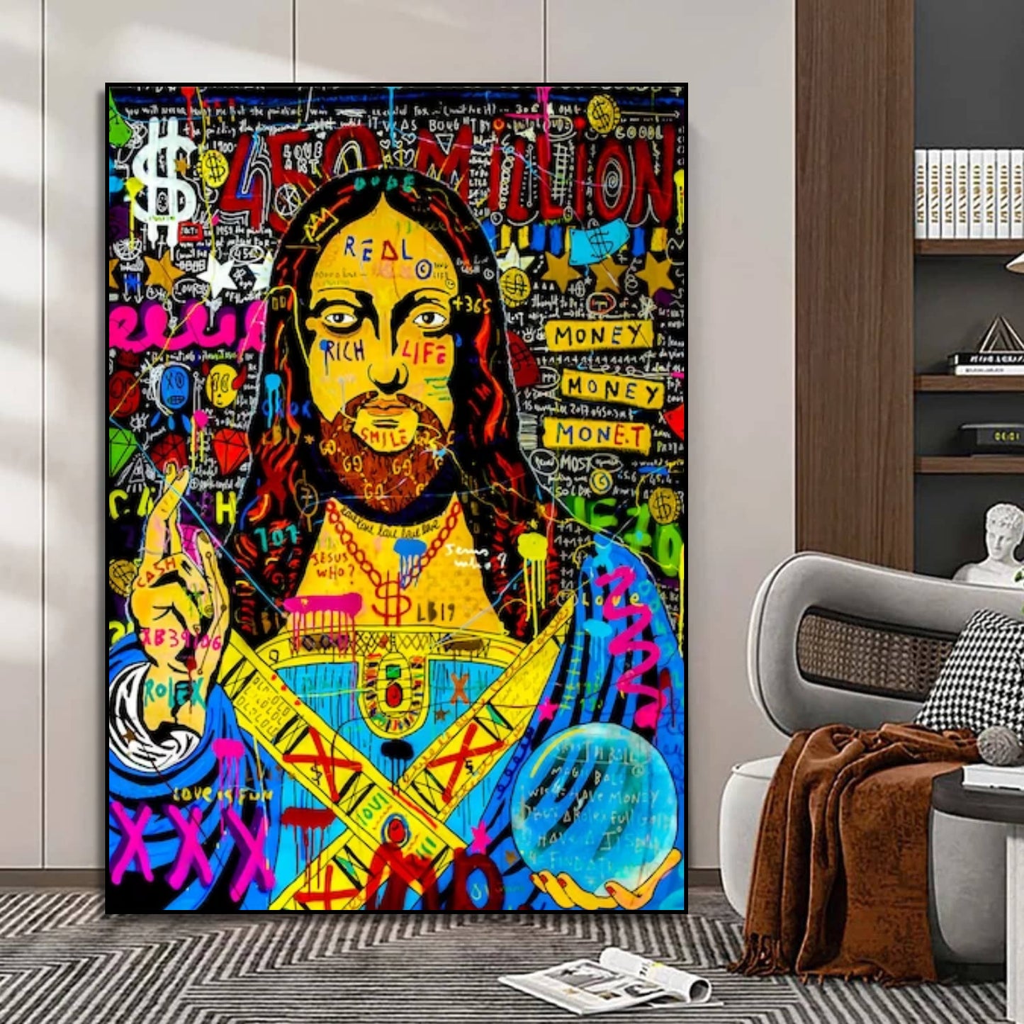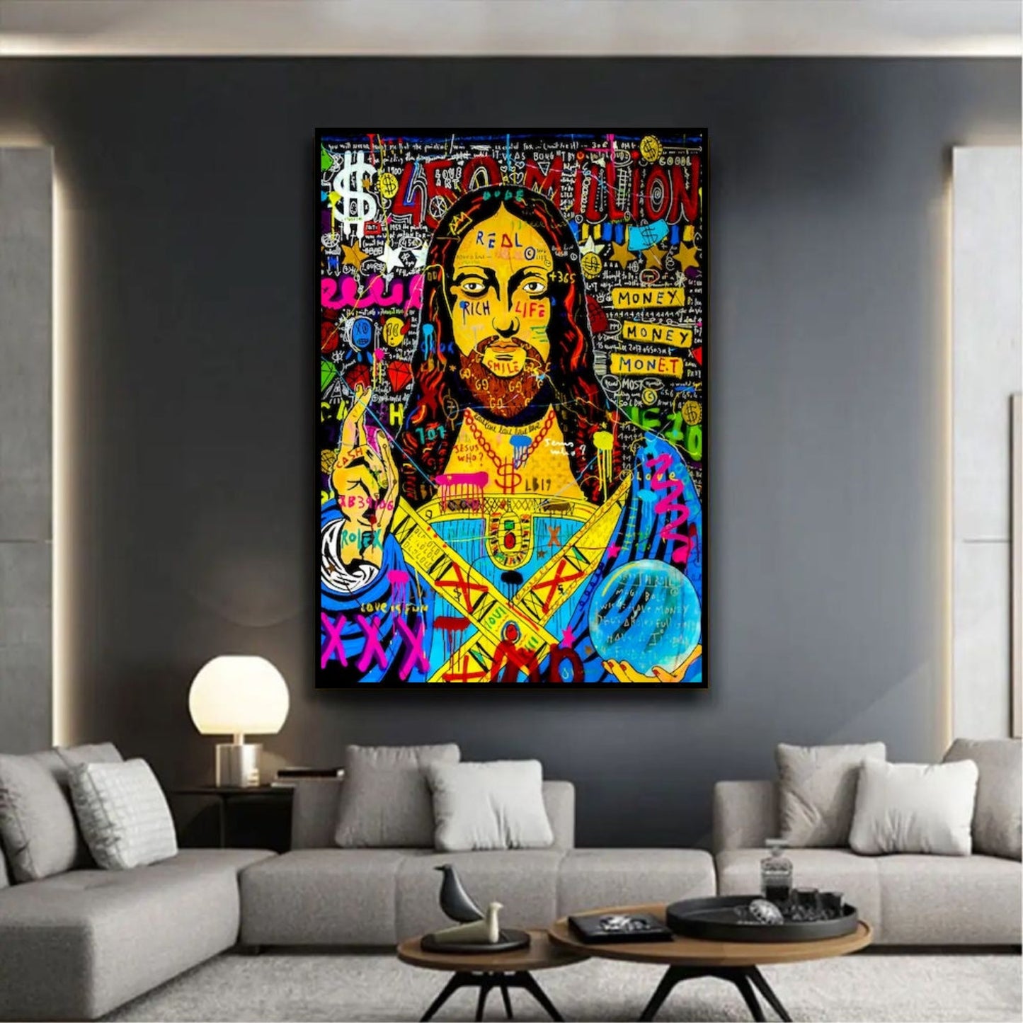Jesus Multicolour Banksy Style Graffiti Oil Painting