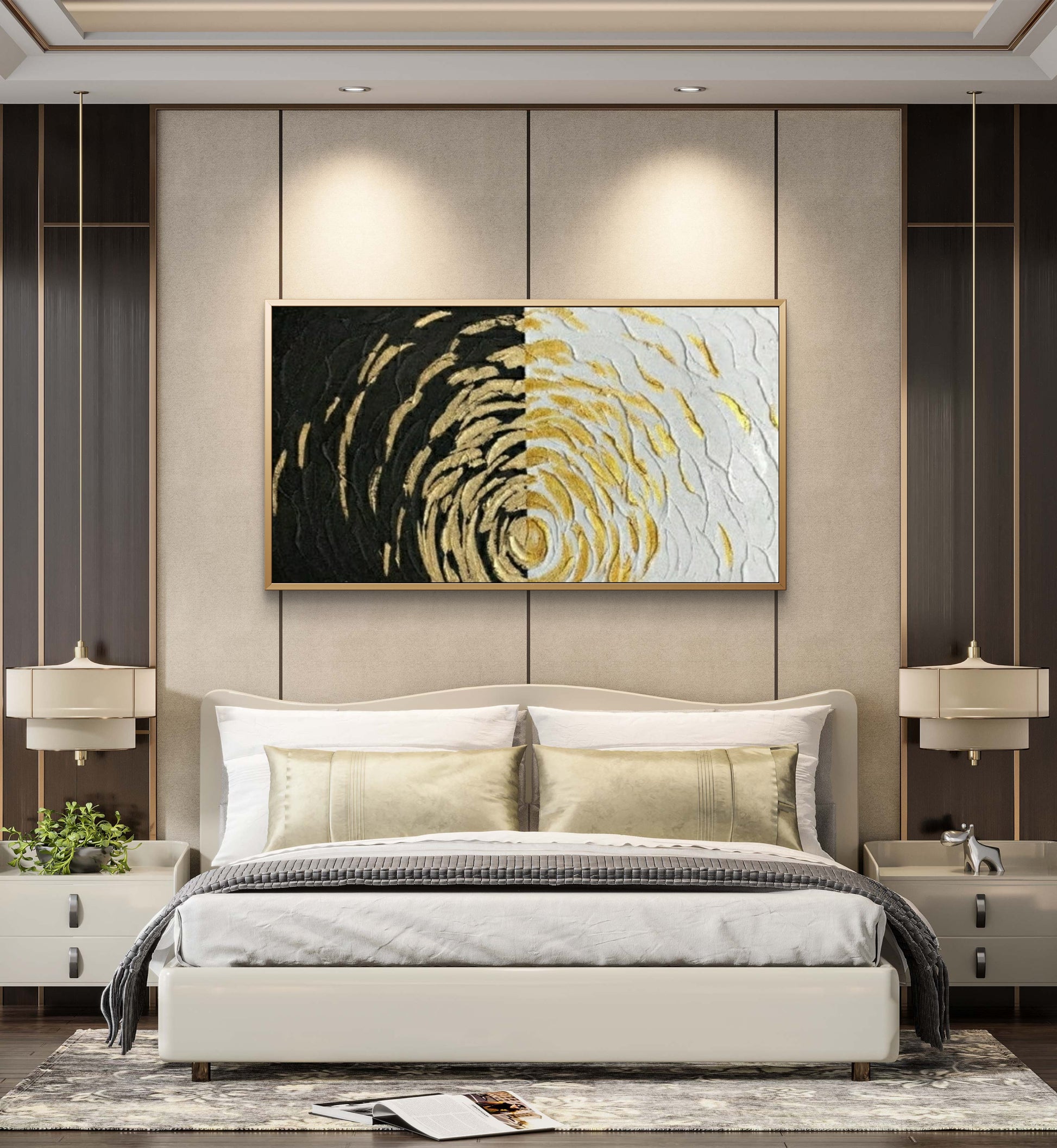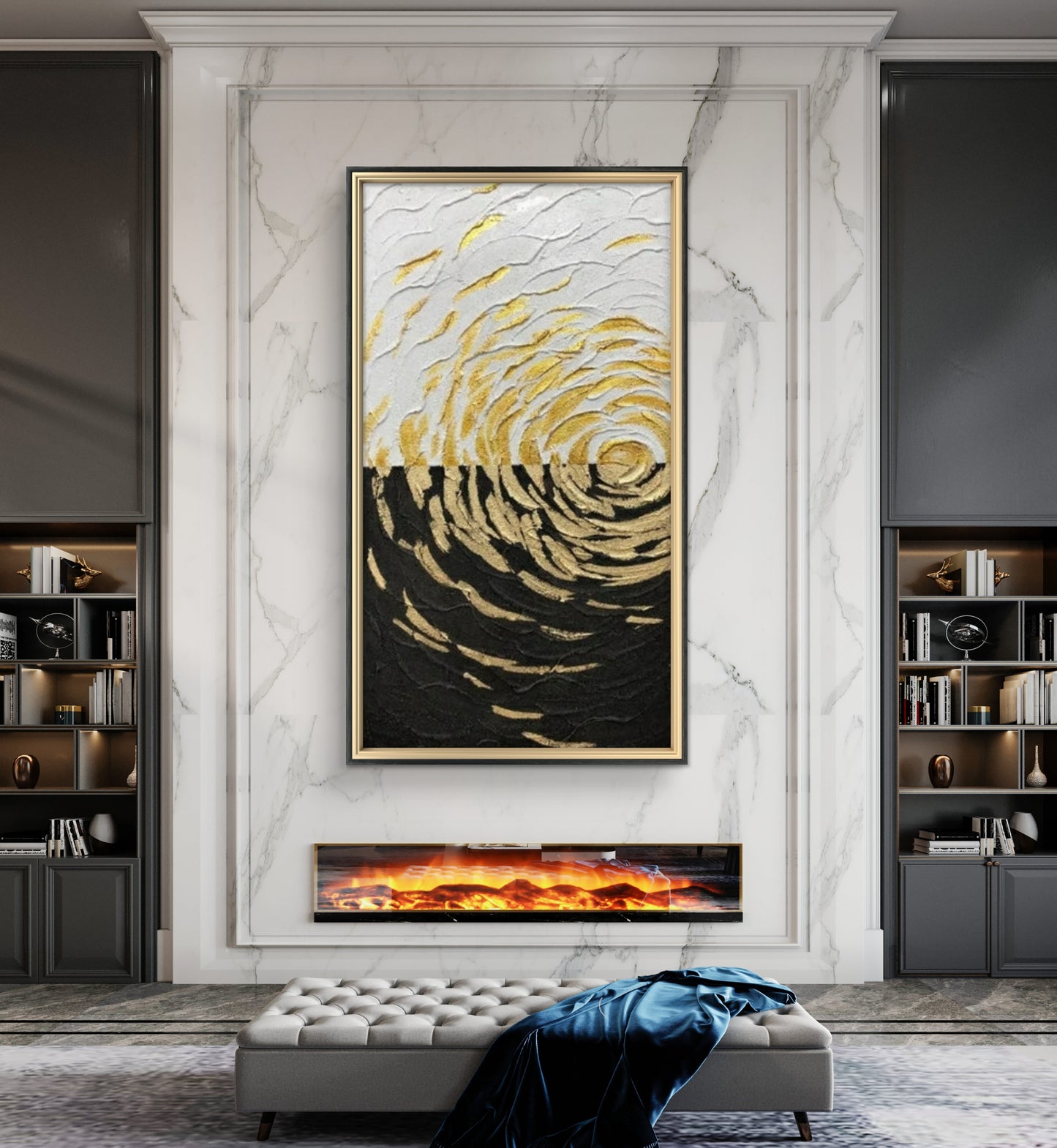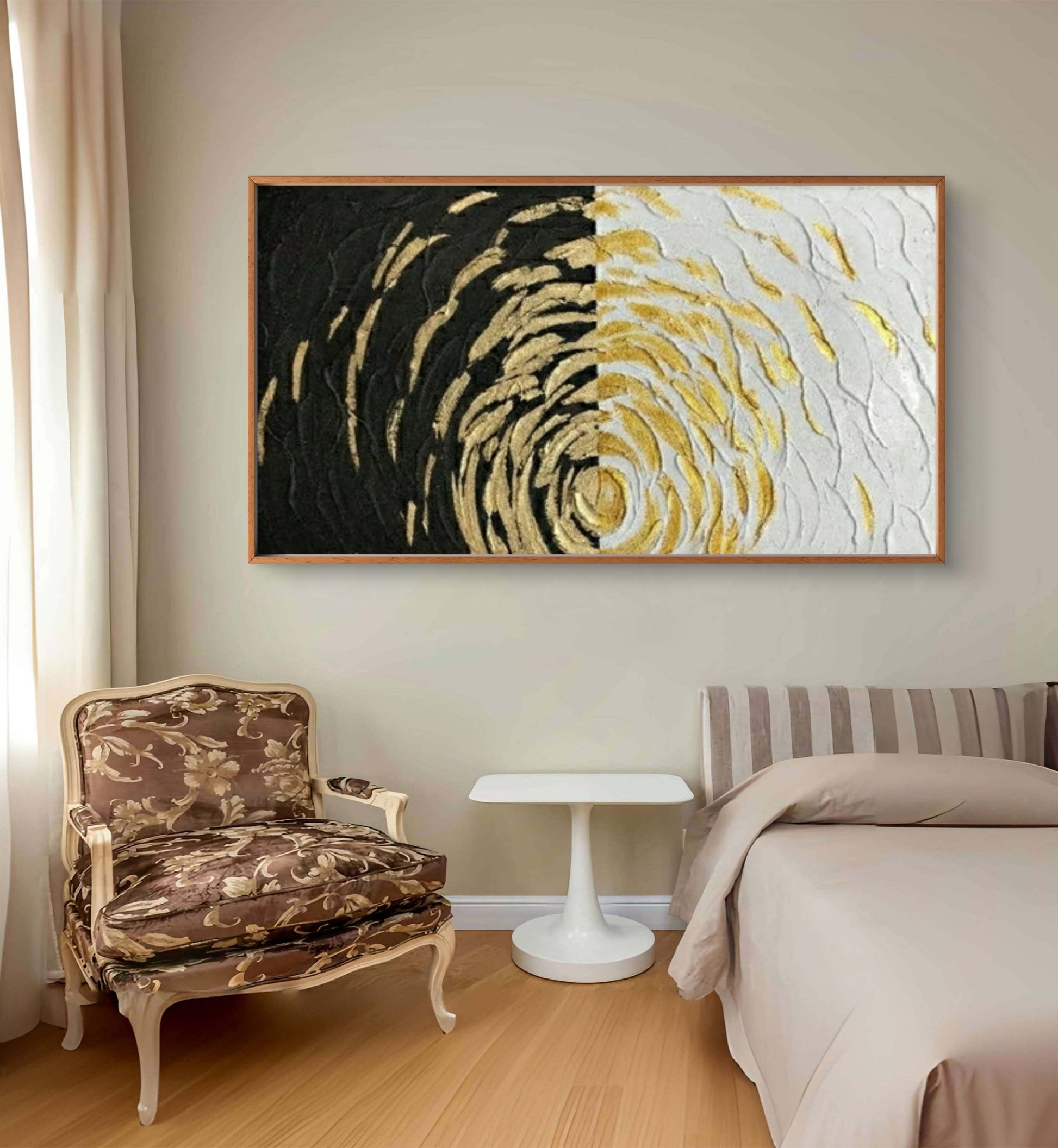 Transform your space into a realm of opulence with our Large 3D Textured Gold Spiral Pattern Geometric Wall Art. This captivating masterpiece seamlessly blends modern design with a touch of luxury, creating a visually stunning focal point for your interior. With its geometric elegance and lavish gold tones, this wall art piece adds a touch of sophistication to contemporary or eclectic interiors.