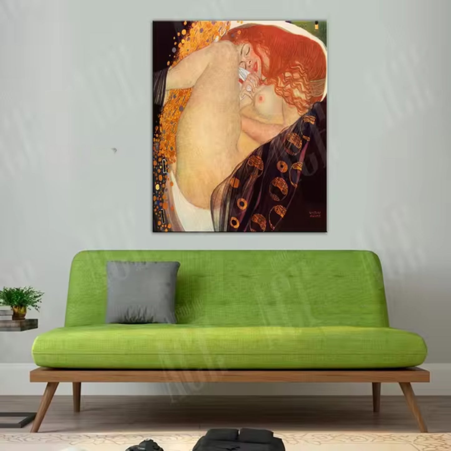 Where passion meets elegance in gold. Inspired by Gustav Klimt’s timeless artistry, “Radiant Embrace of Golden Affection” captures a tender moment between two figures enveloped in rich gold and orange hues. The intricate textures, flowing forms, and shimmering patterns evoke warmth, intimacy, and emotional connection. This luxurious hand-painted canvas is a celebration of love, unity, and classic sophistication — the perfect statement piece for modern living spaces, bedrooms, or art-inspired interiors.