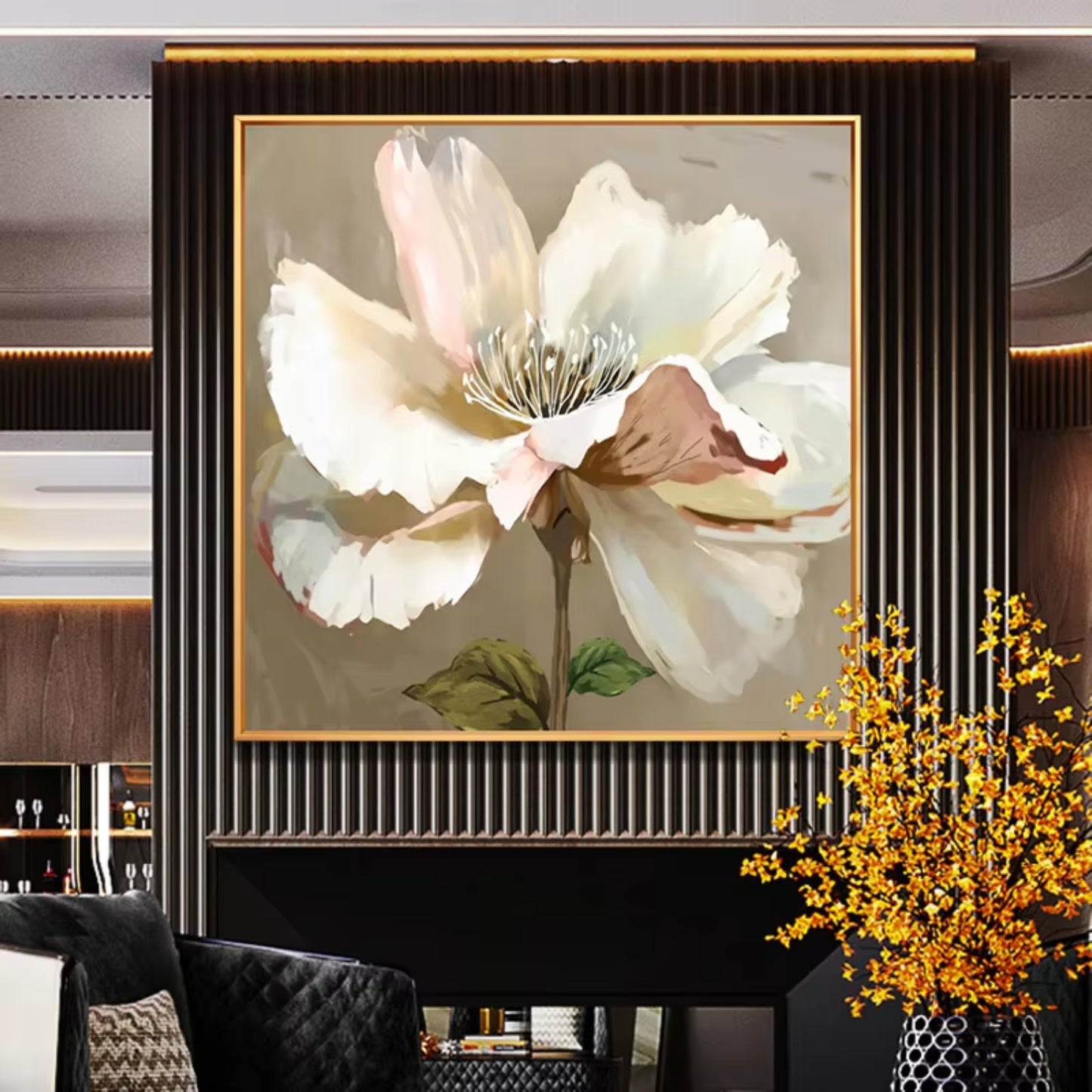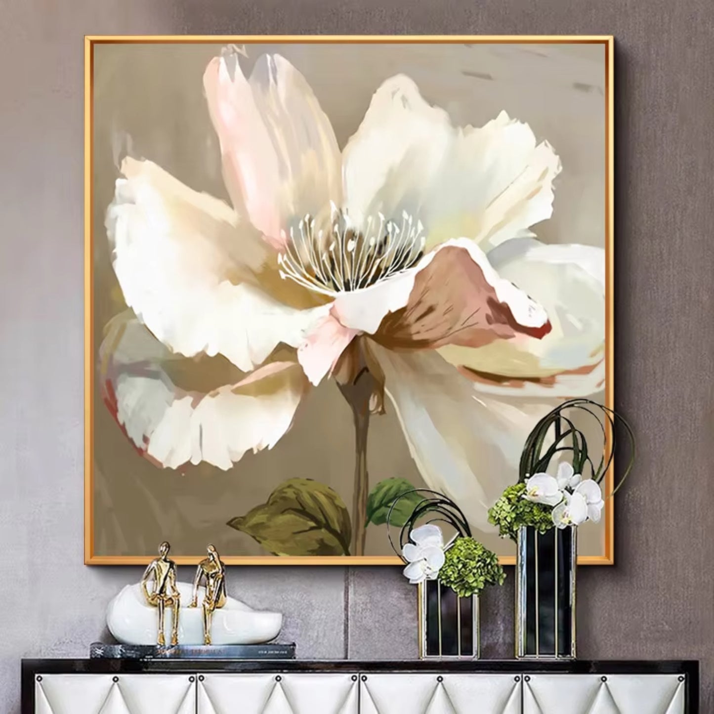 This refined floral artwork is ideal for those who appreciate understated sophistication. Whether displayed in a living room, bedroom, or entryway, its soft palette and natural composition infuse interiors with warmth and timeless charm.