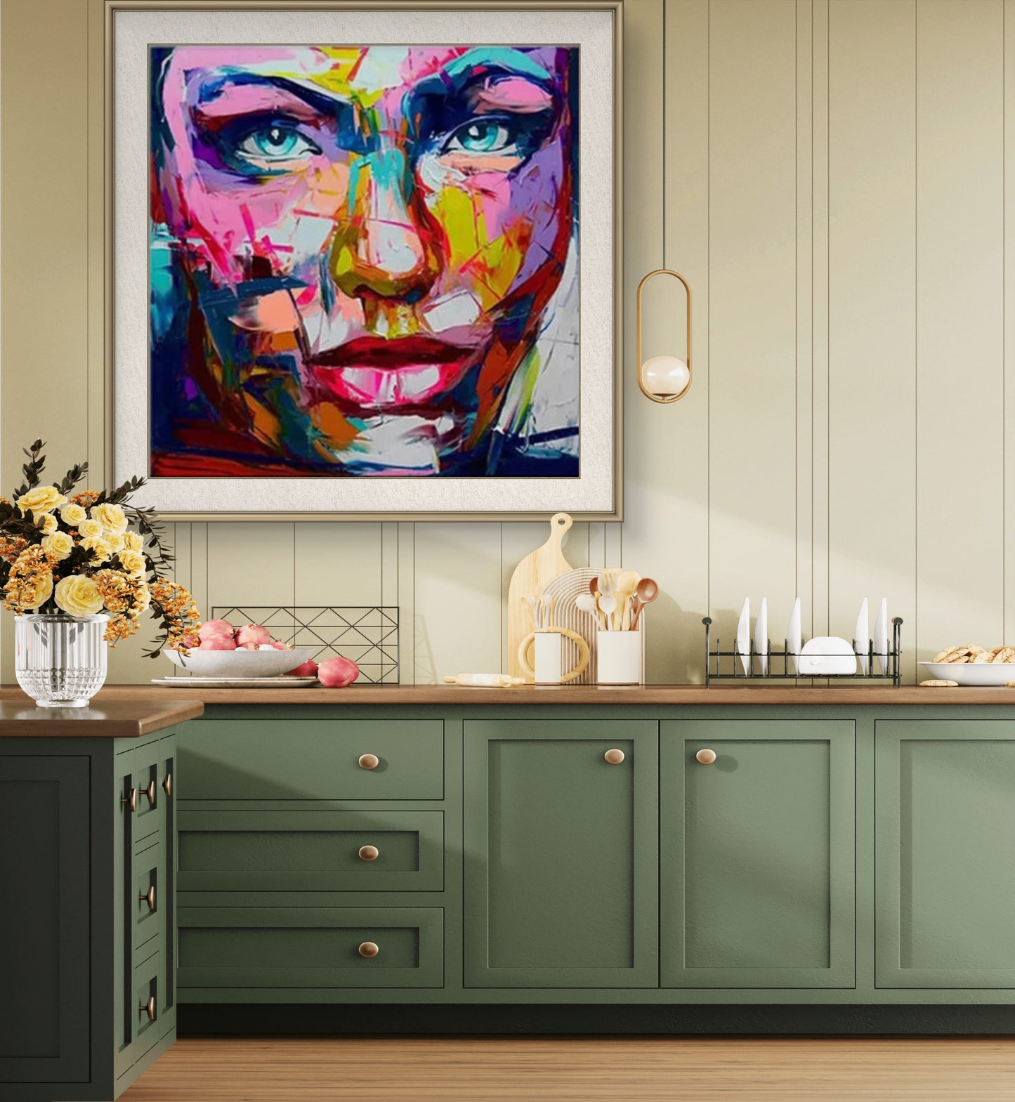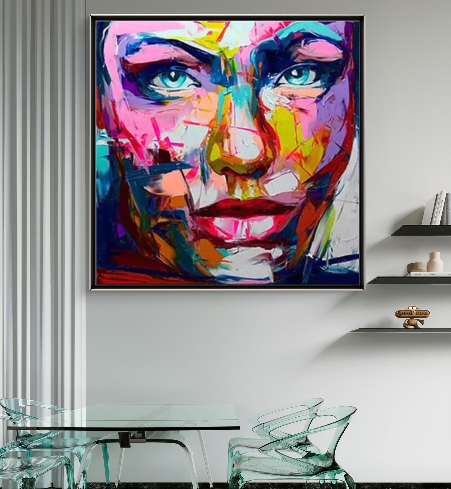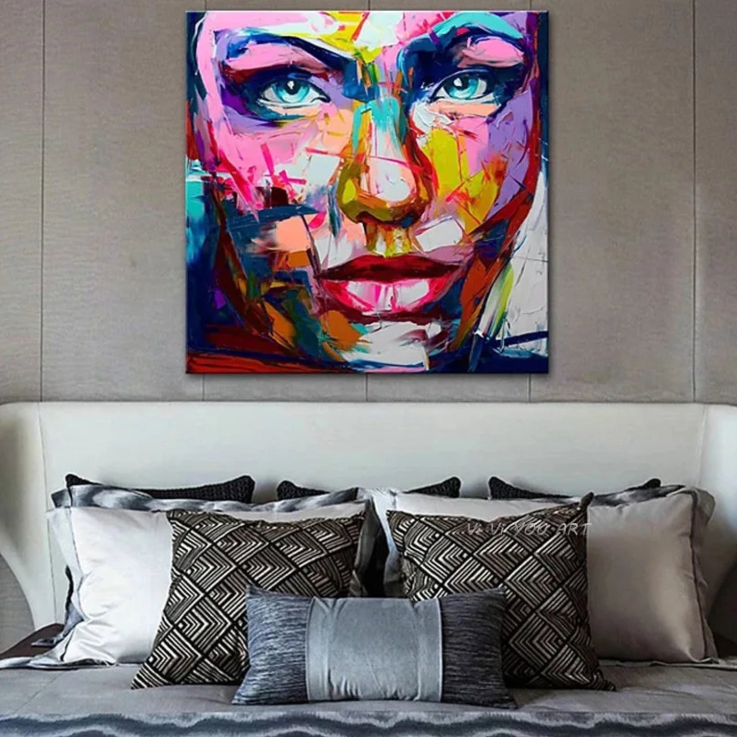 Every painting can be customised in size, colour scheme, or facial tone to fit your space perfectly. Choose softer tones for a refined look or high-contrast hues for dramatic impact.