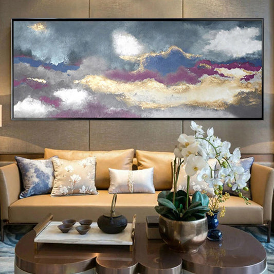Contemporary Cloudy Sky Gold Foil Texture Painting
