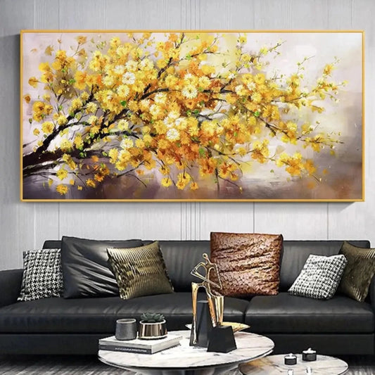 Beautiful Yellow Blossom Tree Acrylic Oil Painting