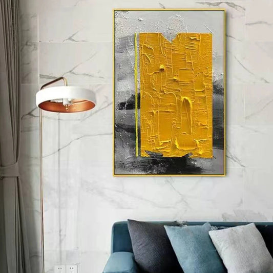 Yellow and Grey Abstract Painting – Hand-Painted Modern Canvas with Industrial Texture