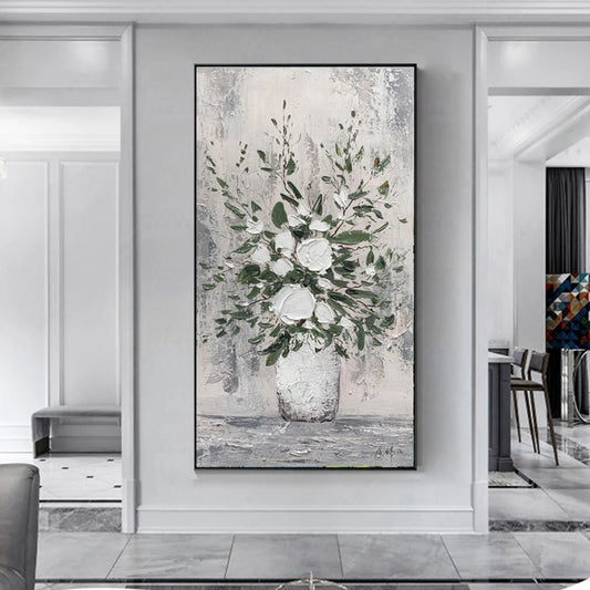 White Peony Bouquet Wall Art – Hand-Painted Textured Floral Canvas Painting