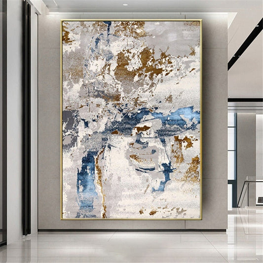 Elegant Gold and Grey Abstract Swirl Painting Modern Hallway Decor