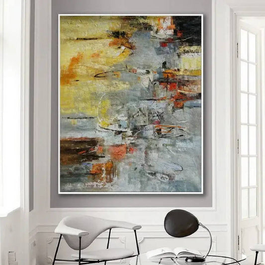 Minimal Yellow Grey Abstract Expressionism Artwork
