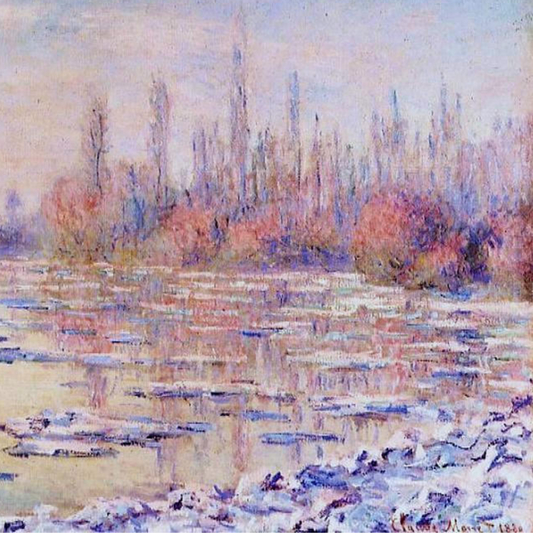 Monet Reproduction – The Seine in Winter, Frosted Banks | Hand-Painted Art