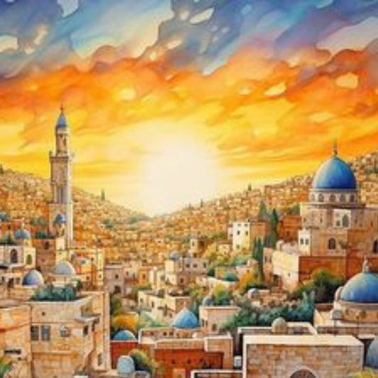 Luxury Islamic Sunset Cityscape Hand-Painted Wall Art