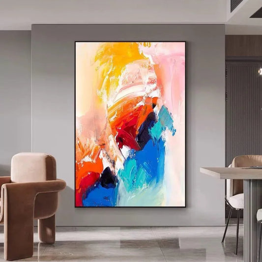 Colorful Abstract Expression Wall Art – Hand-Painted Modern Textured Canvas Painting