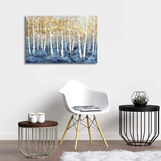 Pastel Blue Yellow Birch Rainforest Abstract Art