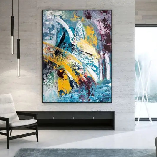 Acrylic Blue Yellow Texture Abstract Wall Painting