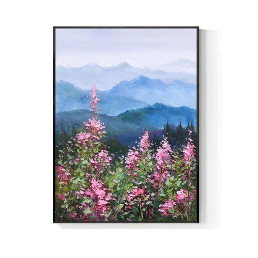 Blooming Pink Flowers 100% Hand Painted Scenery