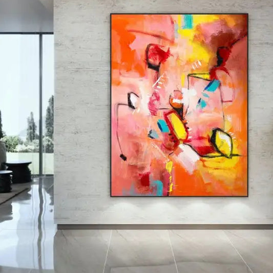 Abstract Eye Painting with Pink & Orange – Hand-Painted Modern Wall Art