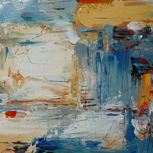 Abstract Blue White Brush Pattern Acrylic Oil Painting