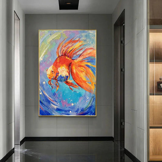 Abstract Ocean Underwater Goldfish Canvas Painting