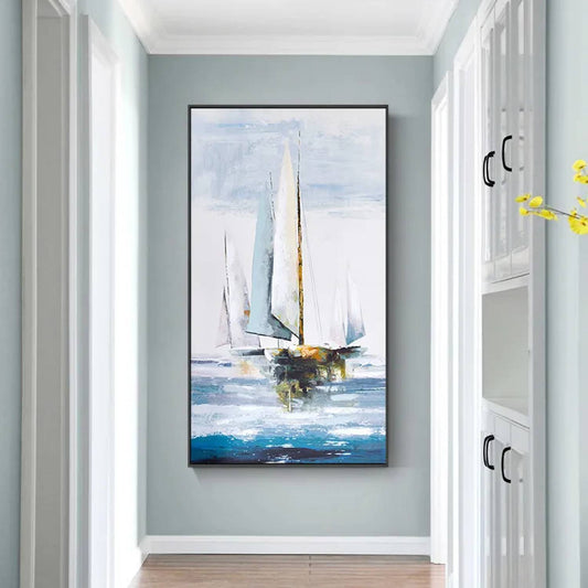 Abstract Sailboat Wavy Heavy Textured Canvas Art