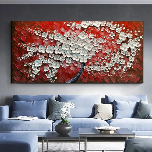 3D White Cherry Blossom Tree Palette Knife Artwork