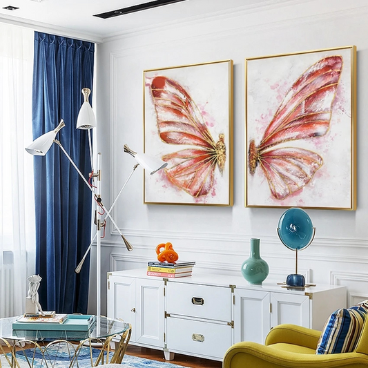 Flying Red Butterfly Abstract Set of 2 Home Decor Painting