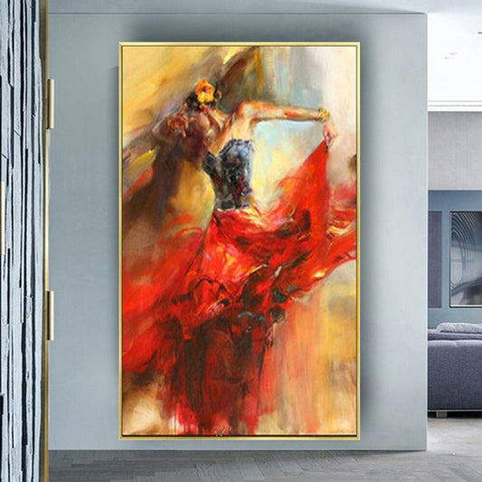 Modern Red Dress Flamenco Dancer Abstract Painting