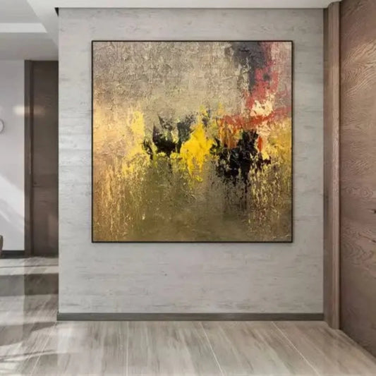 Golden Ember – Textured Yellow & Black Abstract Canvas
