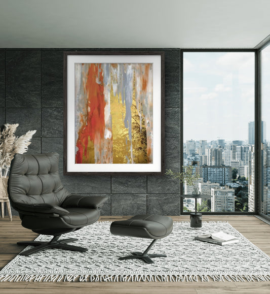 Vibrant Gold and Red Abstract Art - Modern Luxury Wall Decor