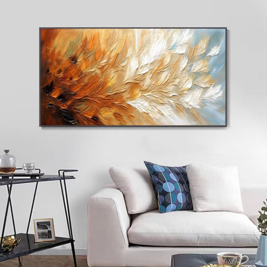 Golden Ember Textured Abstract Feather Painting in Warm Tones
