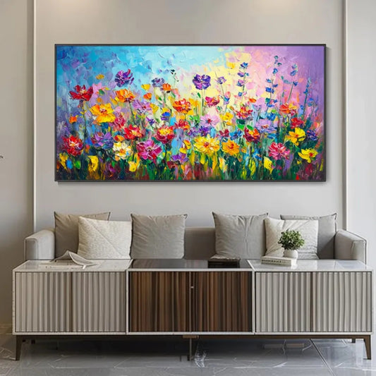 3D Textured Floral Field – Bold Hand-Painted Abstract Flower Impasto Art