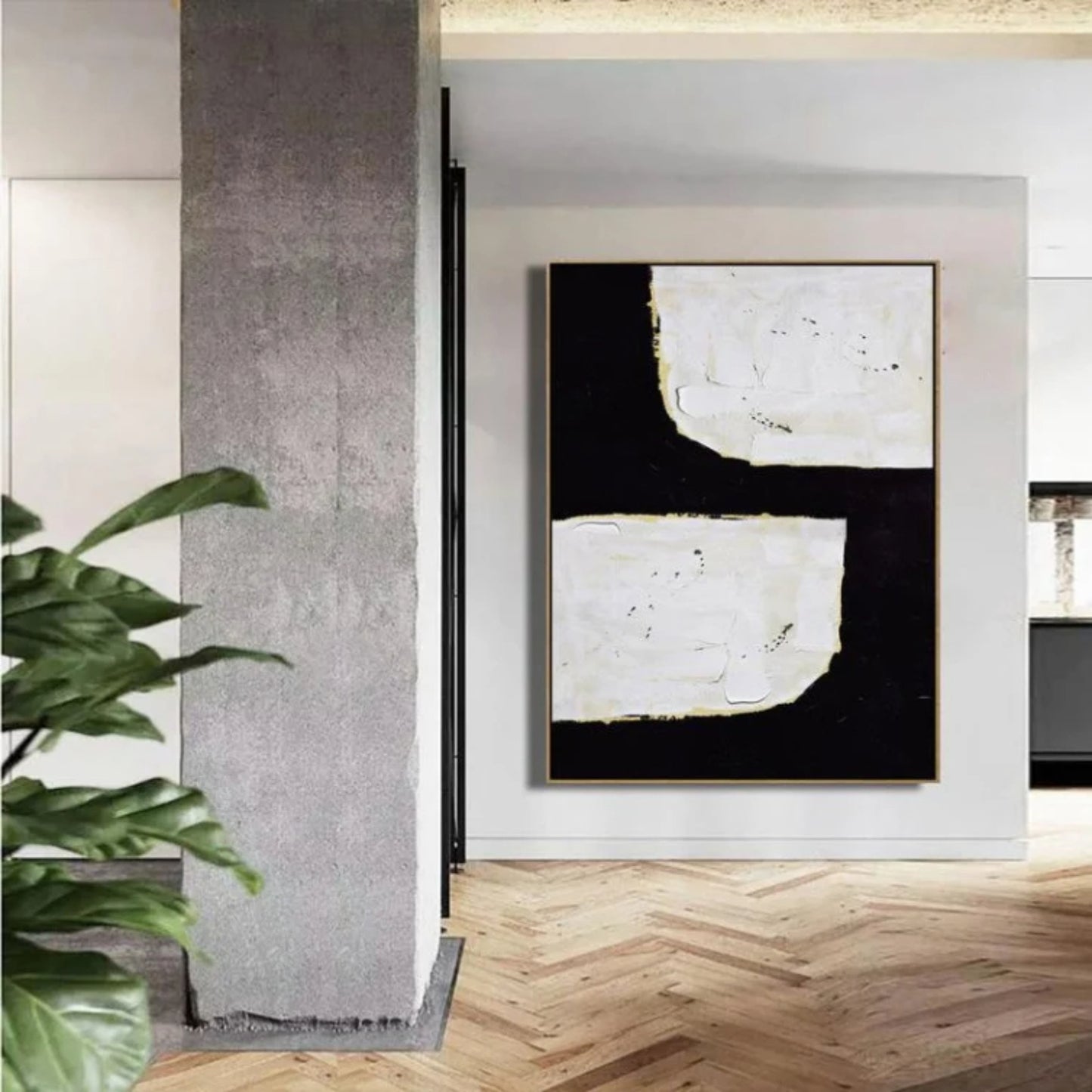 Created with precision and a limited colour palette of black and white, this painting uses palette knife techniques to sculpt and layer paint, resulting in a three-dimensional effect that adds depth and intrigue to the composition. The monochromatic scheme adds a sense of elegance and timelessness to any space, making it a versatile addition to both modern and traditional decor.