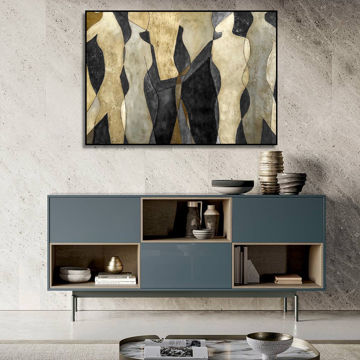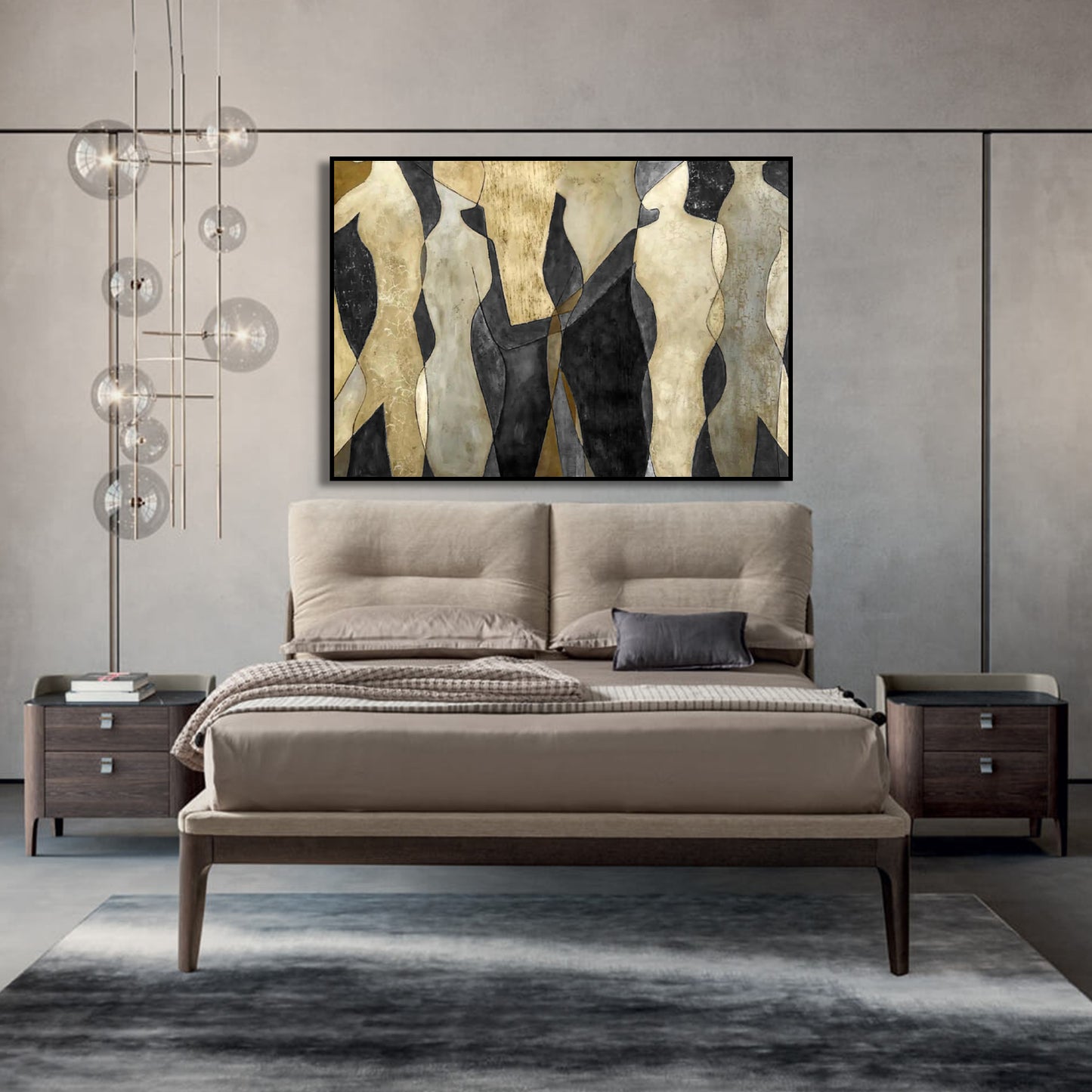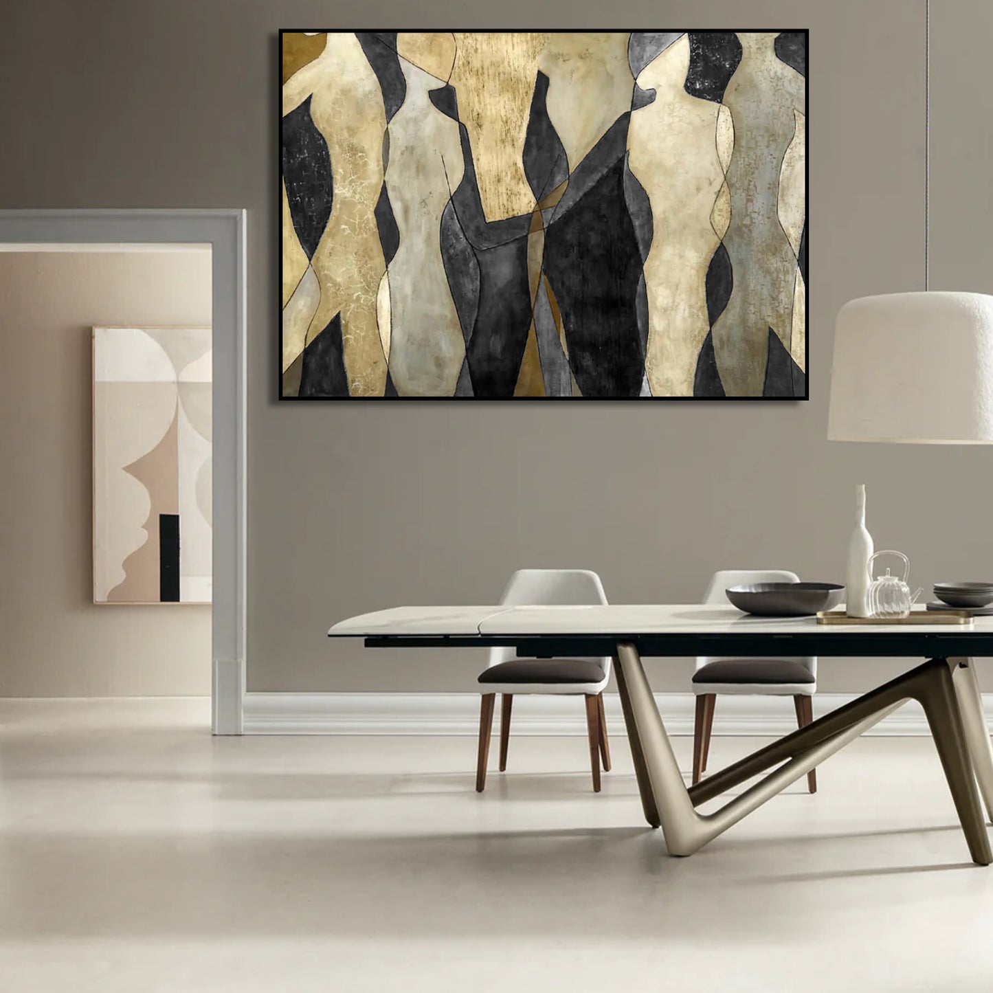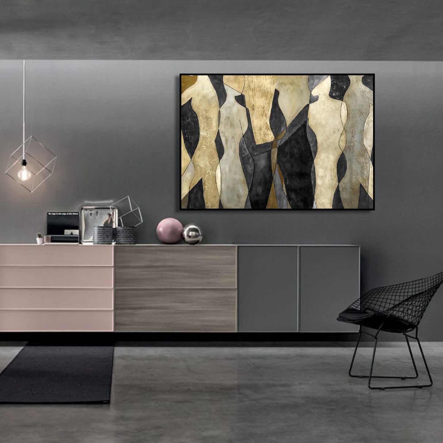 Add a touch of sophistication to your space with our Attractive Black & Gold Minimal Dance Painting. This striking artwork combines the elegance of black and gold, capturing the essence of dance in a minimalist style. Enhance your decor with this visually captivating piece that effortlessly blends modern aesthetics with timeless allure. Elevate your surroundings with the allure of movement and style embodied in this exquisite painting.