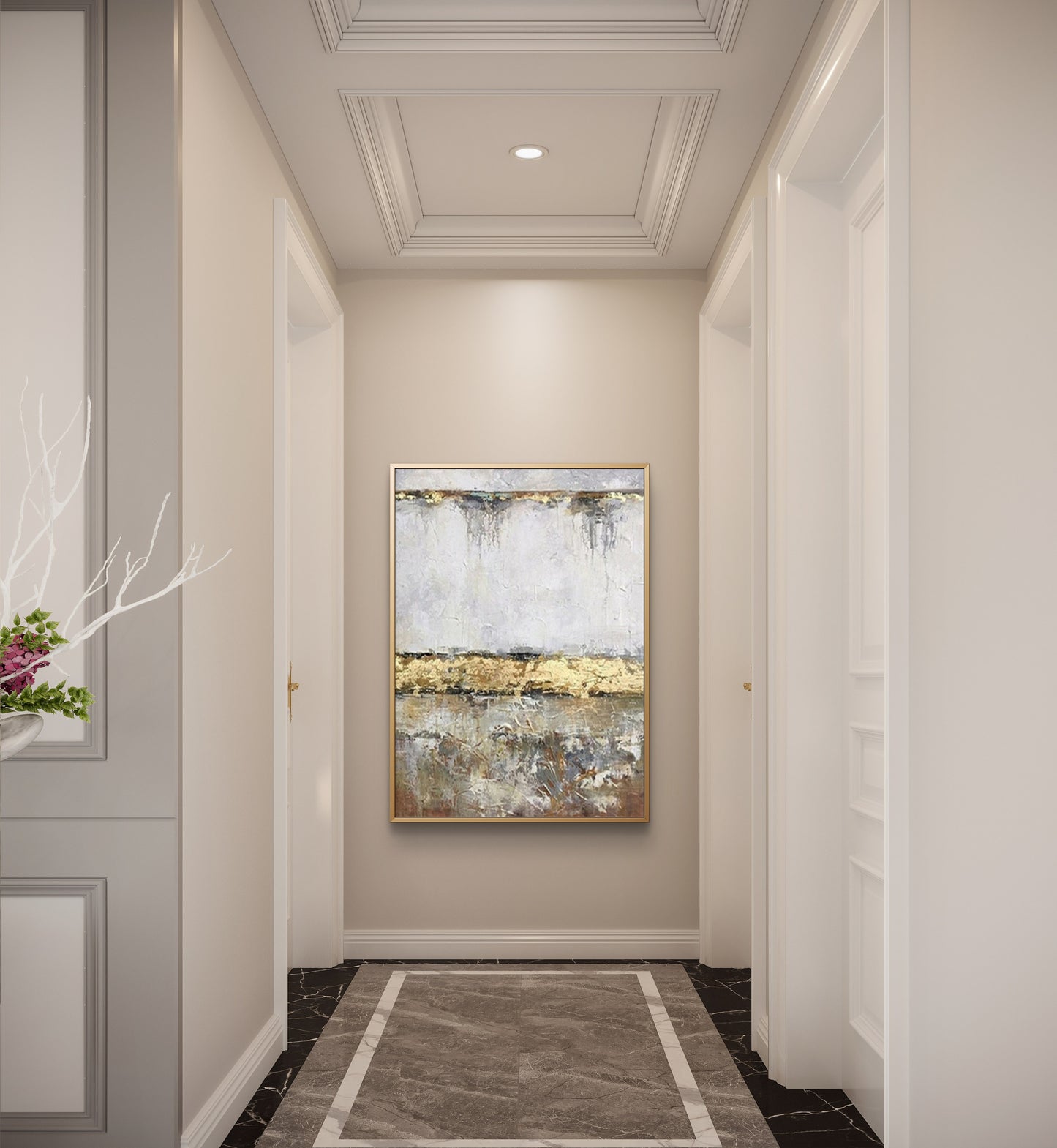 Every painting can be customised in size, colour palette, and texture to match your interior perfectly. We can also add metallic accents, subtle glitter, or unique embedded details upon request.