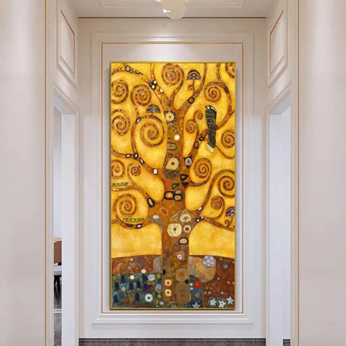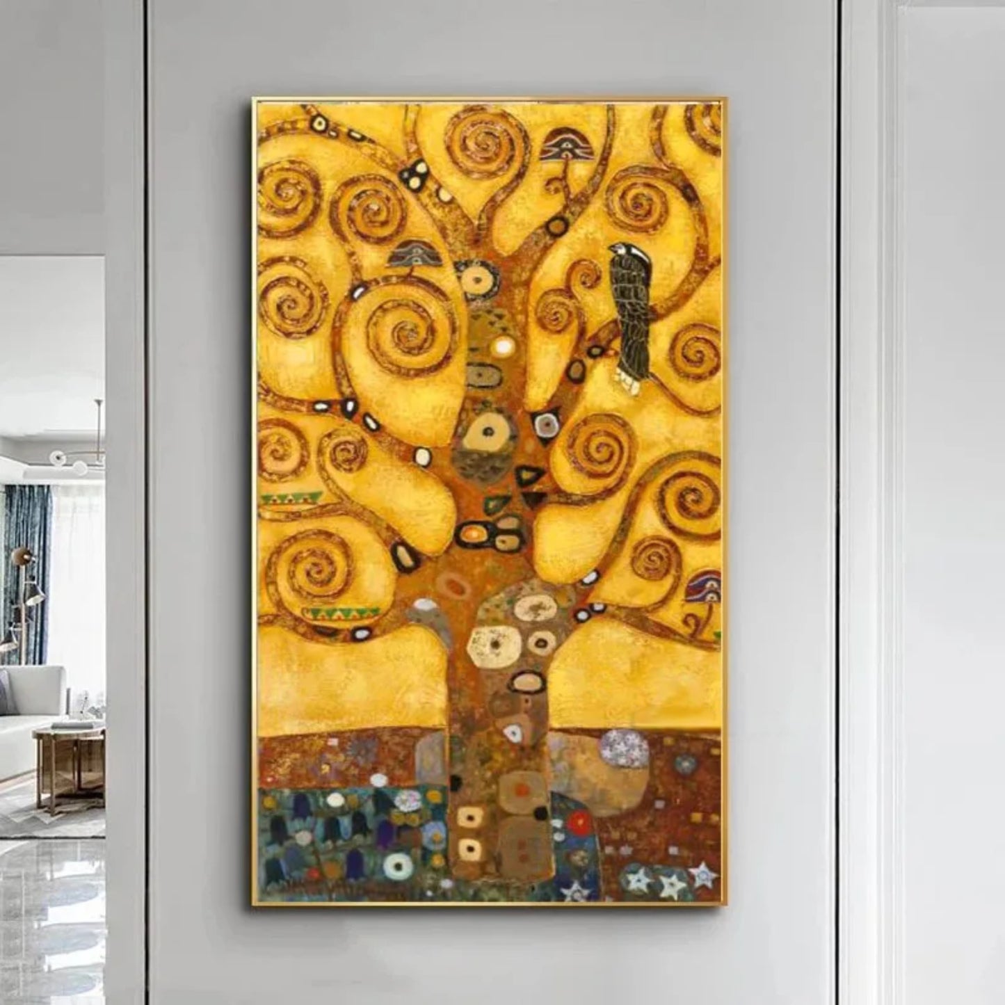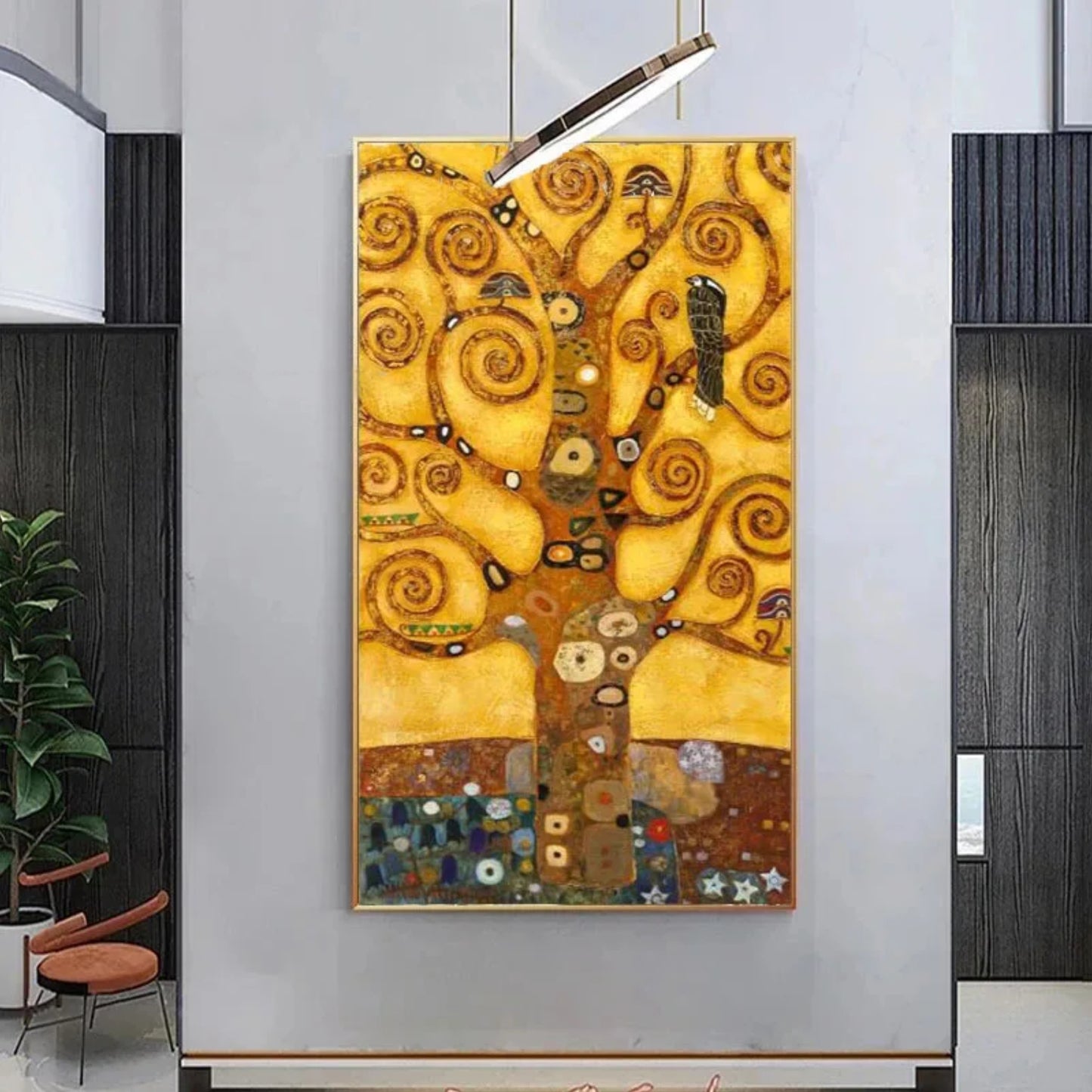 "Golden Symphony The Tree of Life in Spiraling Elegance" is a mesmerizing artwork that captures the essence of life's intricate beauty. This stunning piece features a golden tree with swirling branches and detailed patterns, evoking a sense of harmony and connection. Perfect for adding a touch of elegance and inspiration to any space, this painting serves as a focal point that celebrates the cycles and interconnectedness of life.