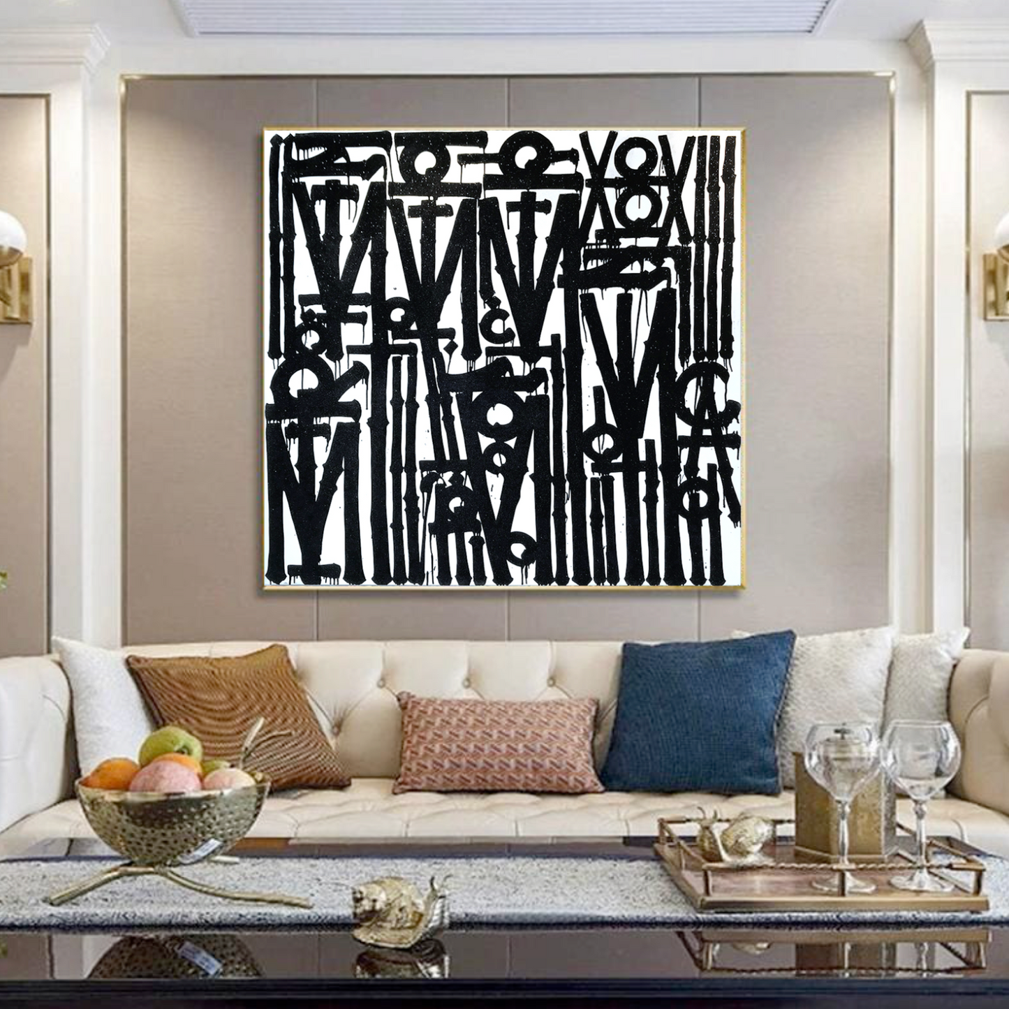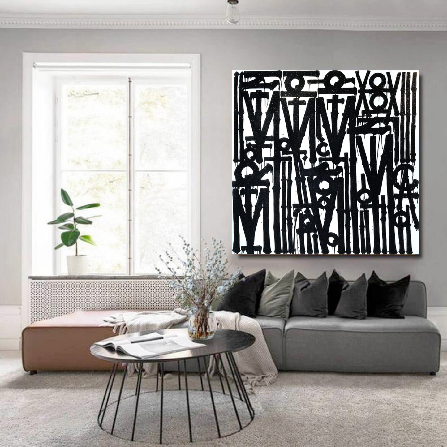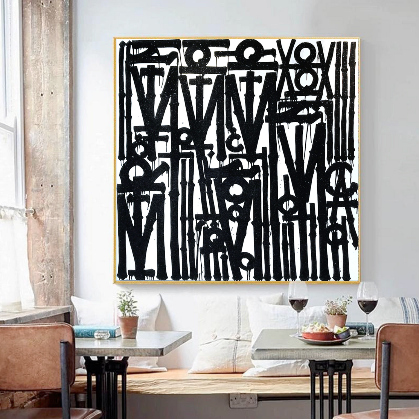 - Square canvas layout for balance and bold statement décor.