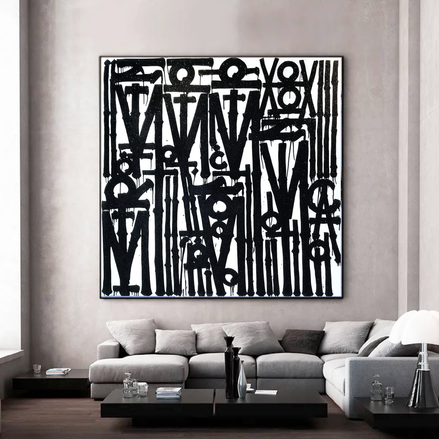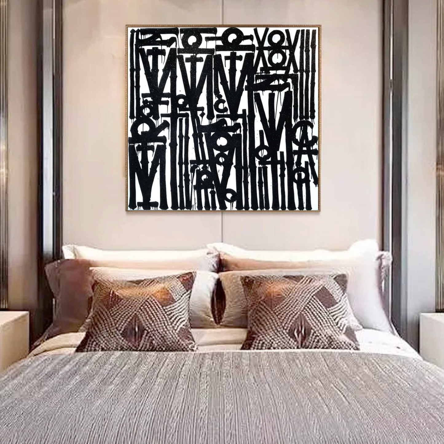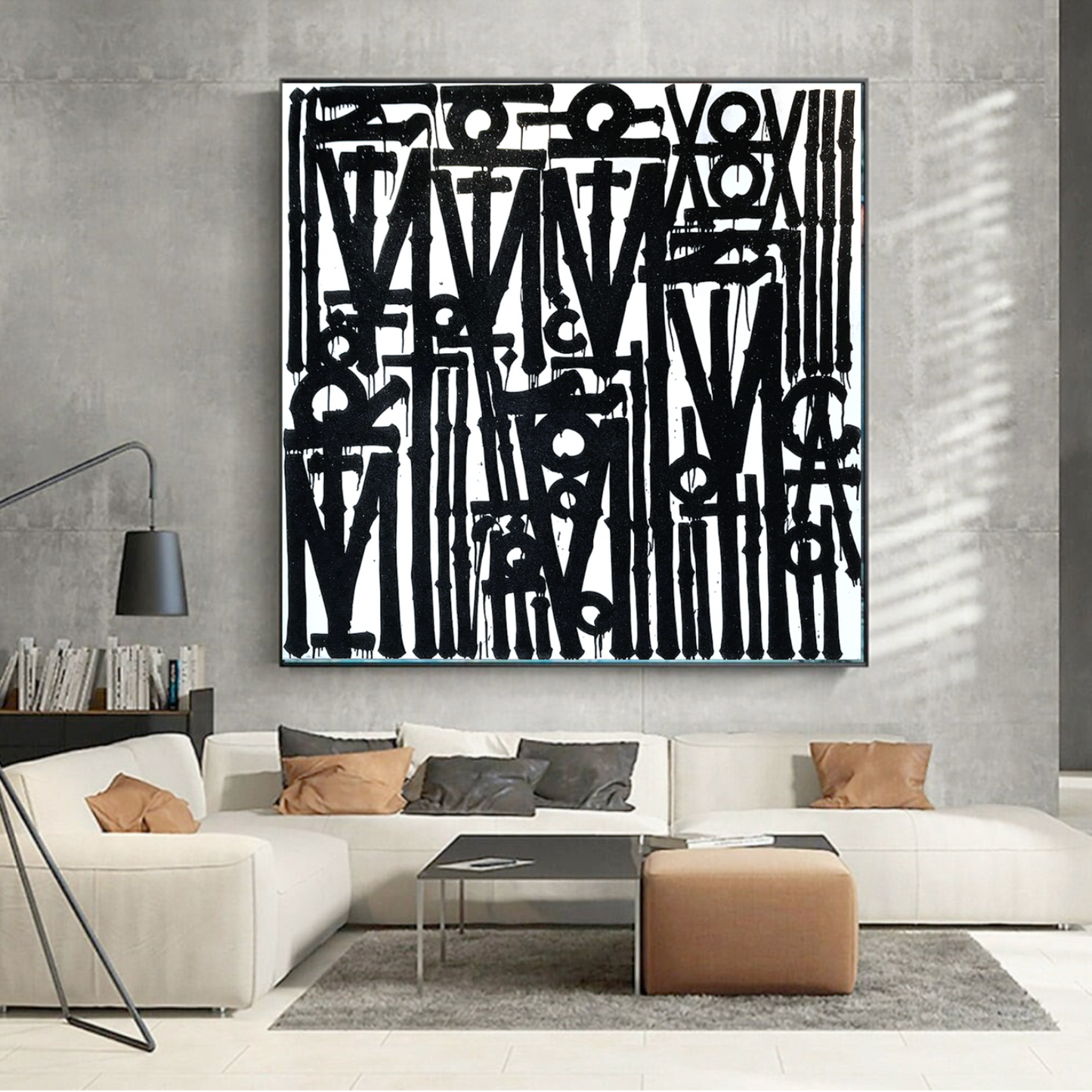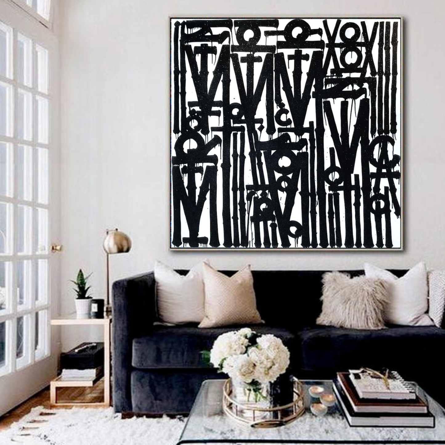 Graffiti White & Black Retna Replica Square Painting – Hand-Painted Urban Calligraffiti Art