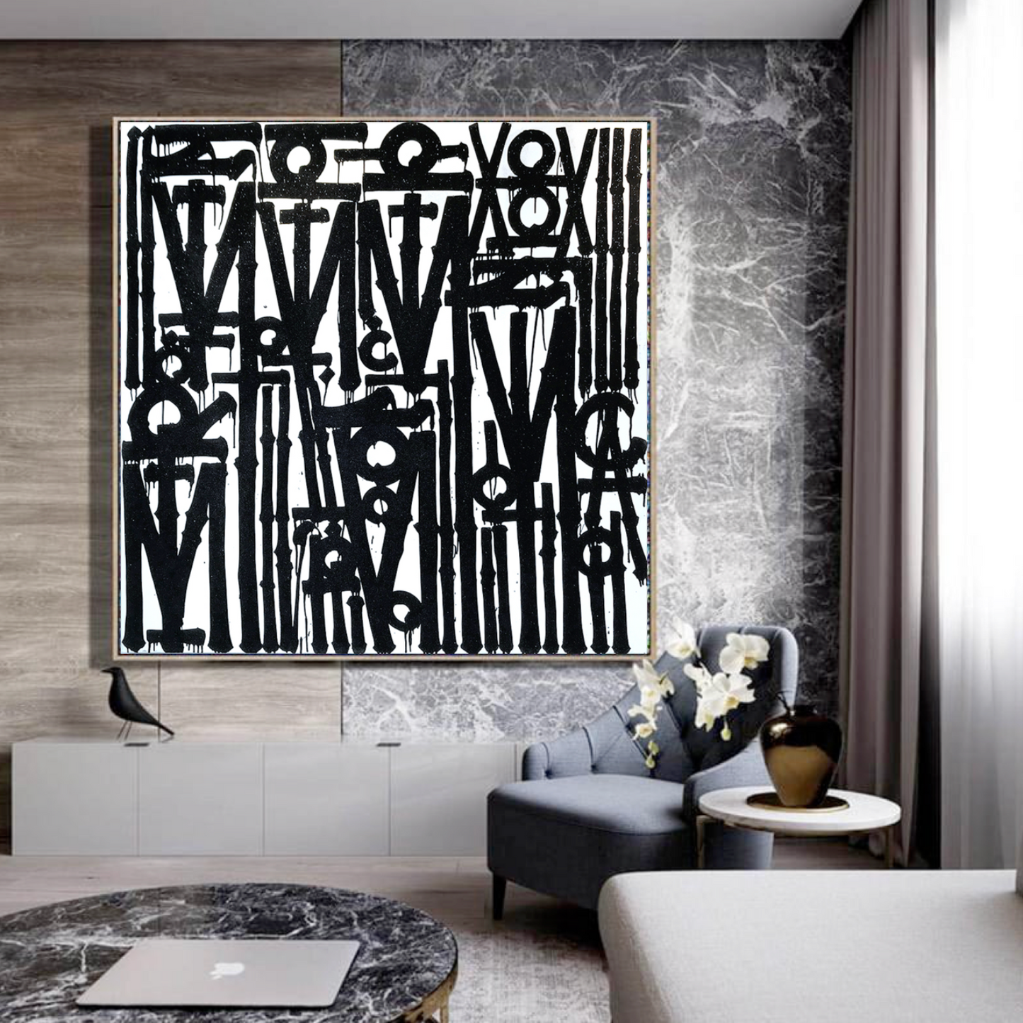“This Retna-inspired square canvas gives my loft a real urban vibe.”