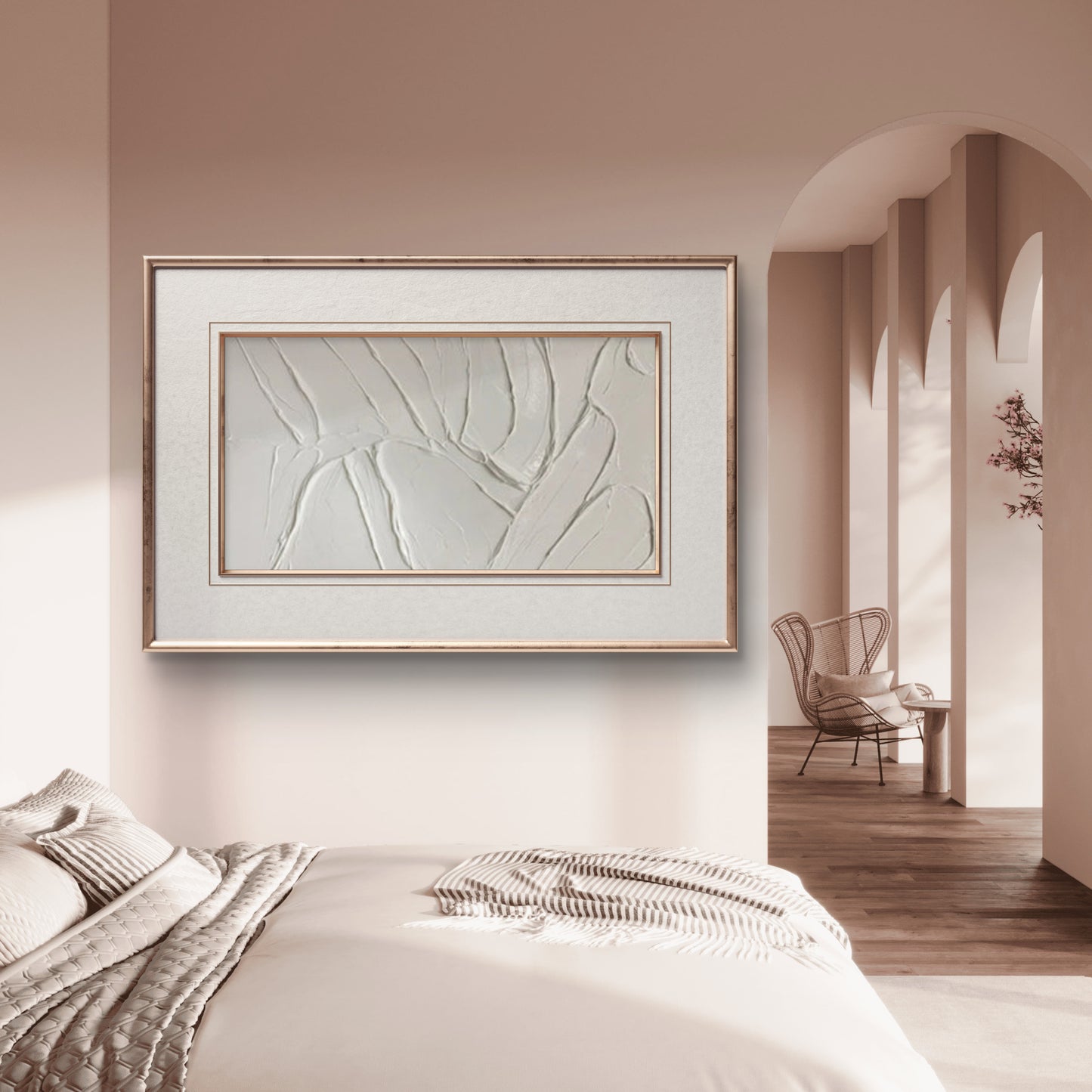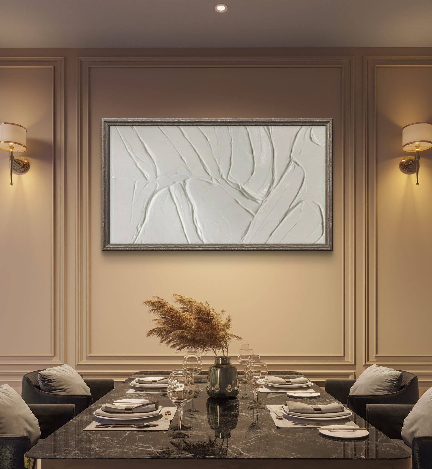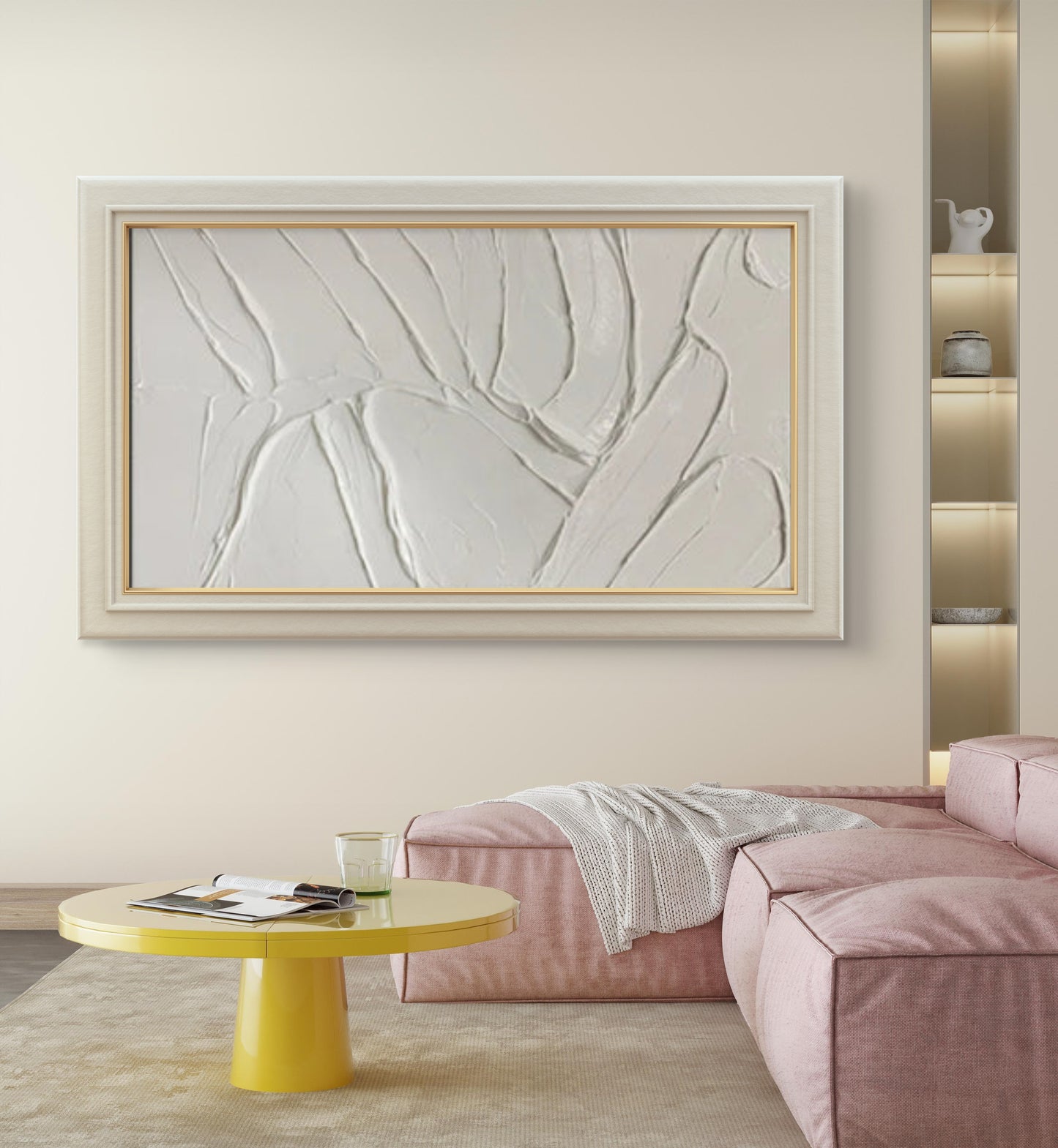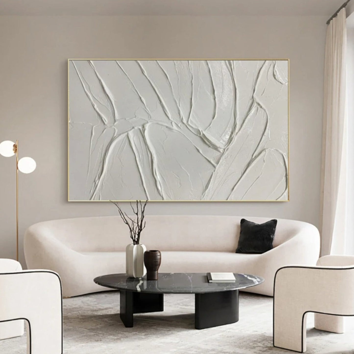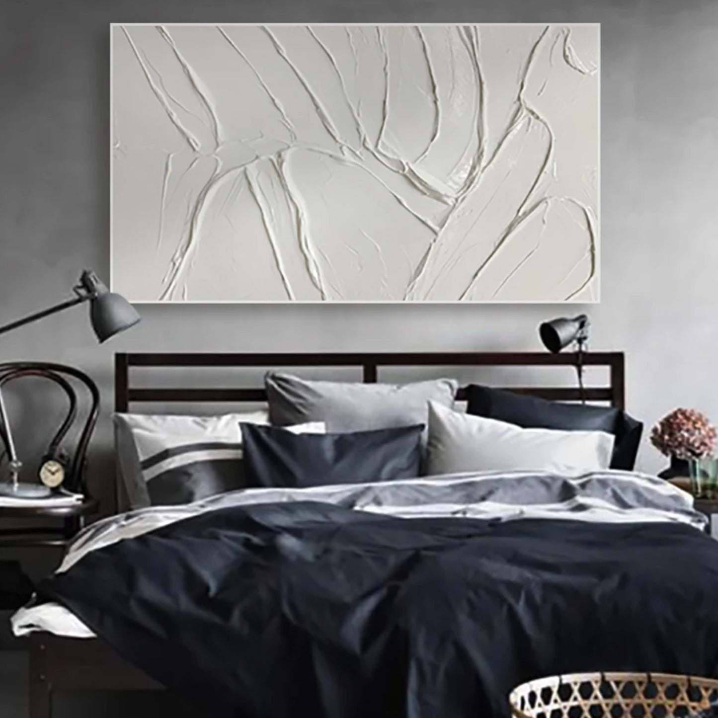 Introducing our captivating "Minimalist White 3D Textured Abstract Modern Painting" - a striking embodiment of simplicity and depth. This masterpiece combines minimalist design with intricate textures, creating a captivating visual experience. Perfect for those who appreciate understated elegance, this painting serves as a dynamic focal point in any room.