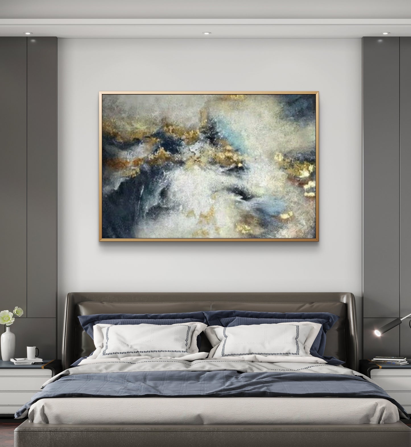 Modern Gold Foil Cloud 100% Hand Painted Wall Art